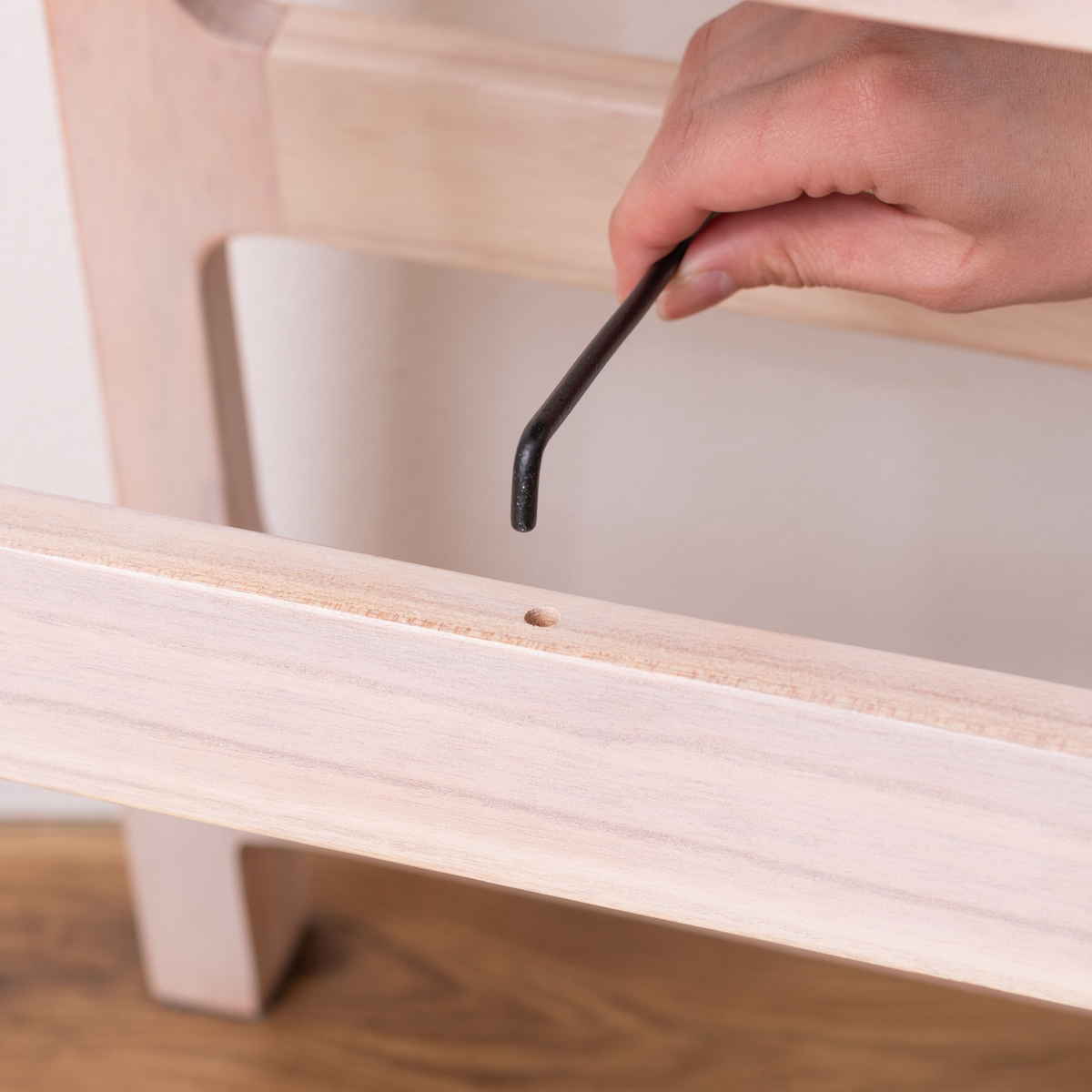 本体を開いた後は、付属の金具を穴に差し込んで固定できるため、不意に折りたたまれる心配がなく、安全にお使いいただけます。