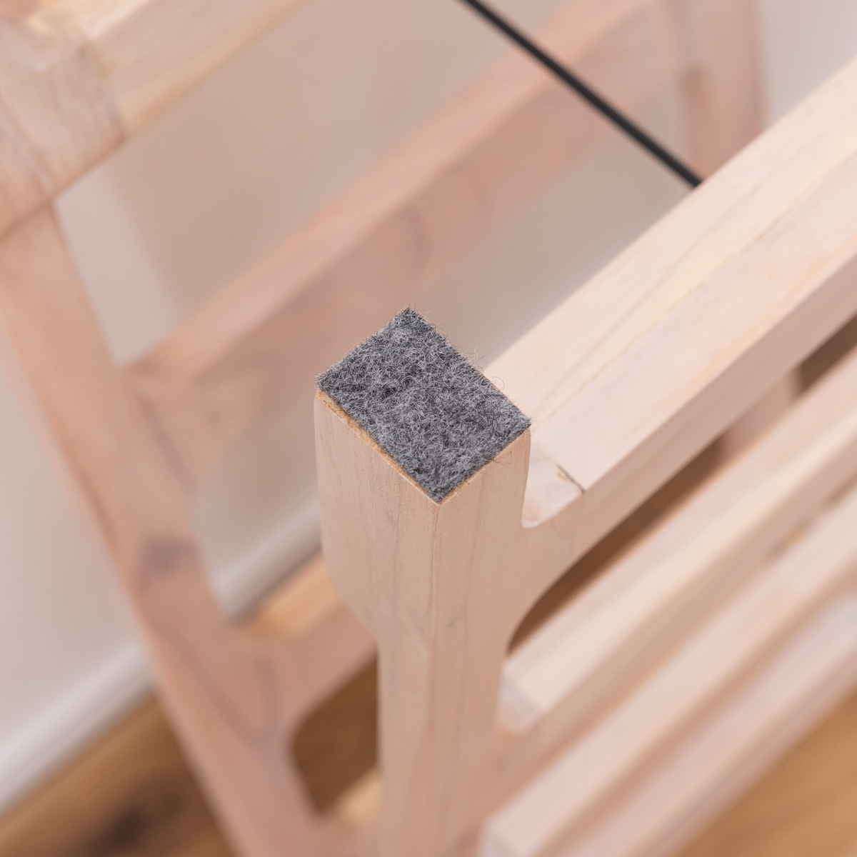 本体の脚裏にはフェルトが付いています。床へのキズを軽減し、賃貸やフローリングのご家庭でも安心してお使いいただけます。
