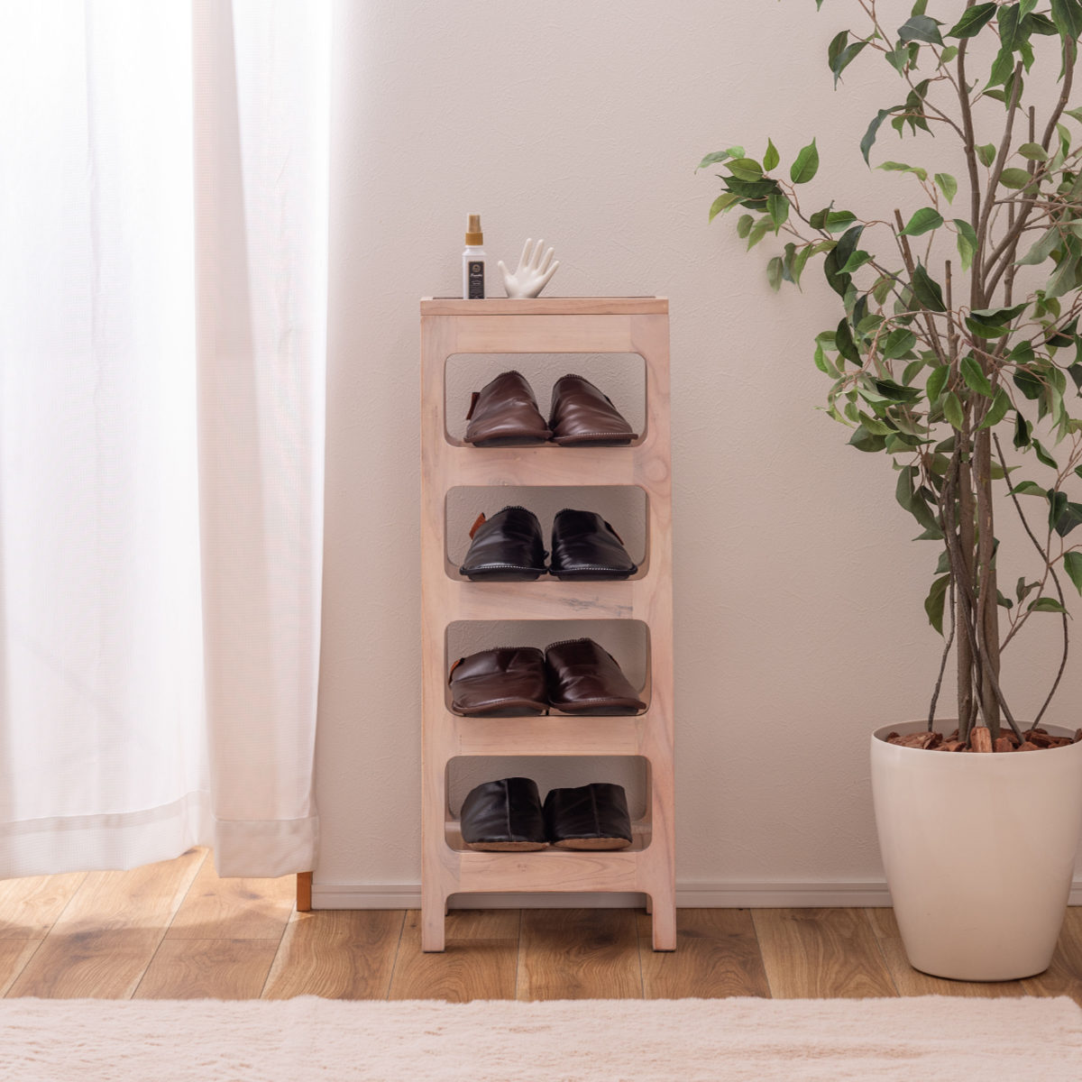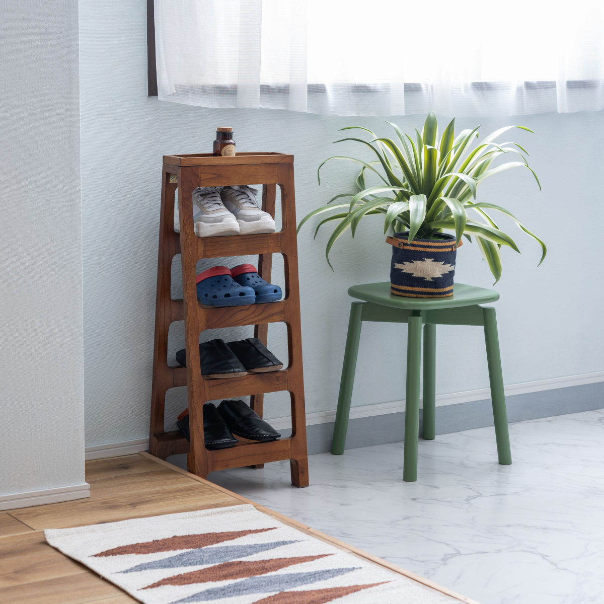 必要最小限の靴だけを美しく並べられる、たくさんの収納を求めていない方のためのシューズラックです。気に入った4足だけを飾るように収納でき、ミニマルライフに相応しい靴収納です。