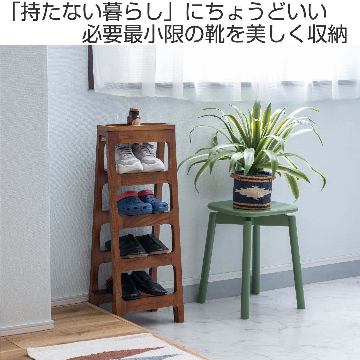 下駄箱 シューズラック 4段 木製 ( 玄関 靴 収納 コンパクト ミニマム 4足 天然木 スリッパラック スリム 完成品 幅32cm 一人暮らし ワンルーム シューズ ラック 収納棚 おしゃれ 棚 ディスプレイラック ) 【ホワイト】