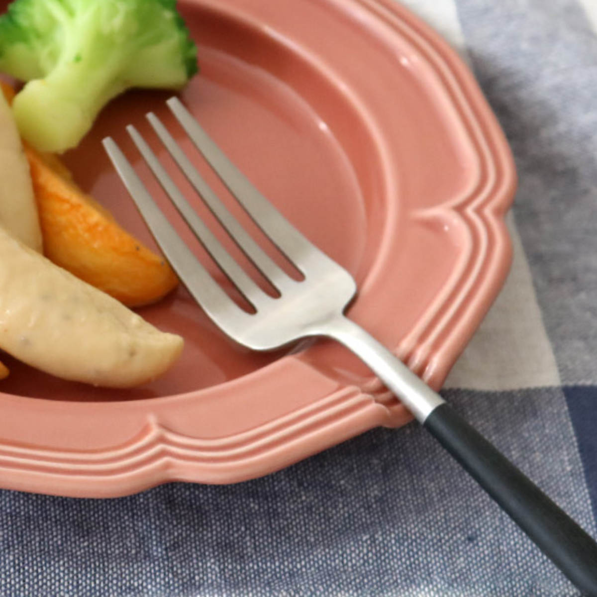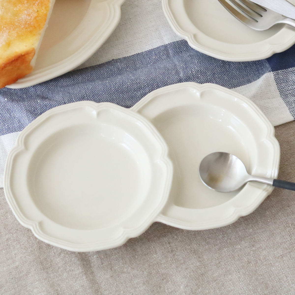 お皿のフチにくぼみがあるので、食事中に箸やスプーン、フォークをちょっと置くのに便利です。