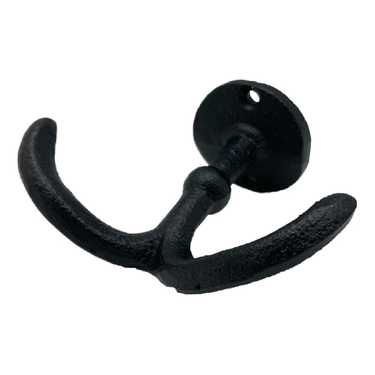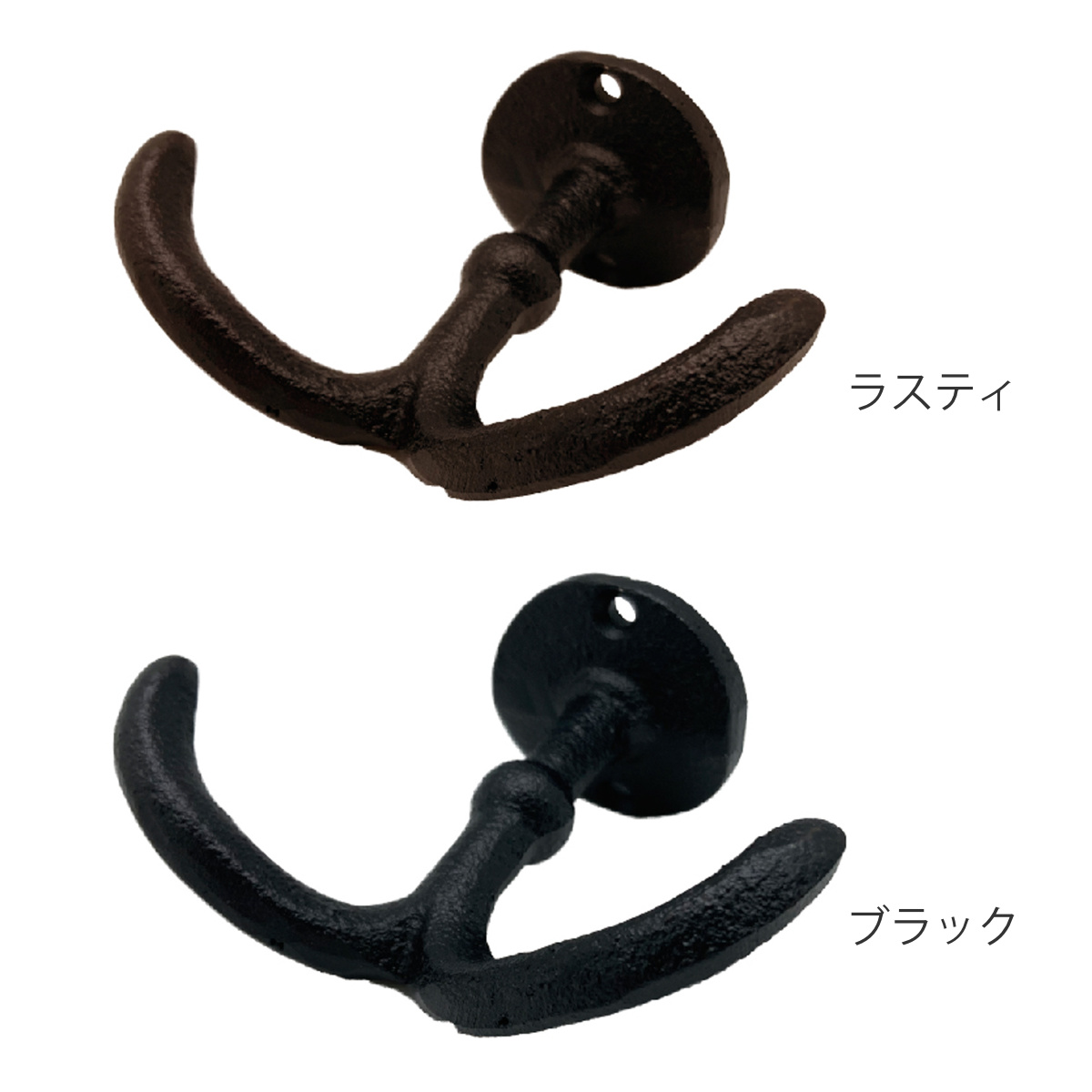 クラシックな雰囲気漂うアンティーク調のアイアンフックです。重厚感のある質感と味わい深いデザインが、お部屋のインテリアをワンランクアップさせます。複数のアイテムを同時に掛けられるダブルフックで、実用性とおしゃれを兼ね備えたアイテムです。