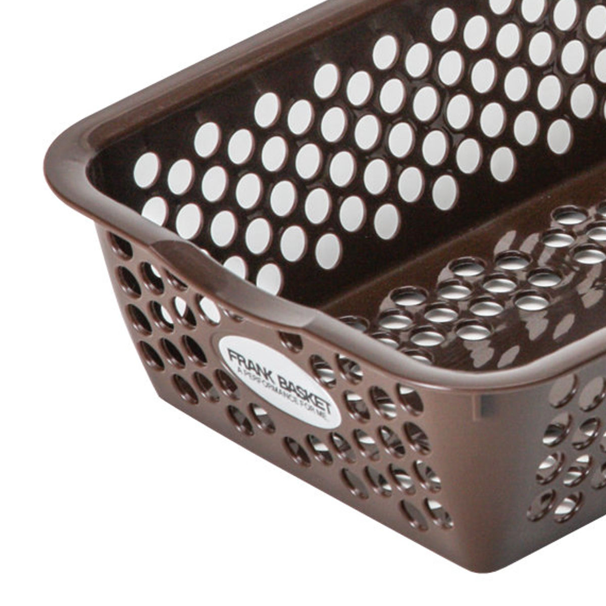 収納ケース バスケット 10個セット フランクバスケット 小物収納 幅16.3×奥行26.5×高さ6.5cm ( プラスチック 収納 収納ボックス かご カゴ ストッカー 小物入れ 小物 通気性 日本製 リビング キッチン ランドリー ) 【ブラウン】