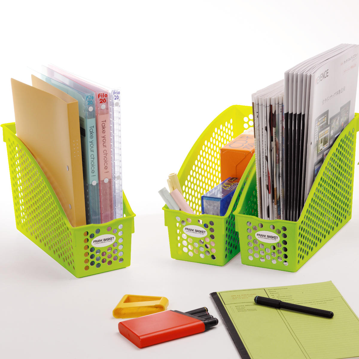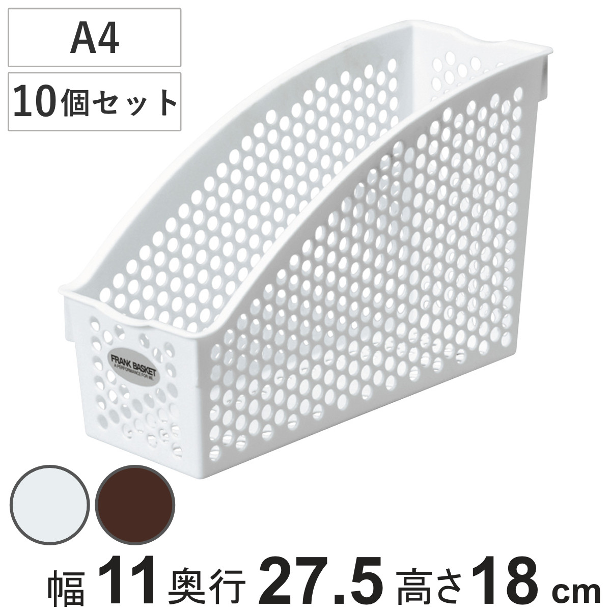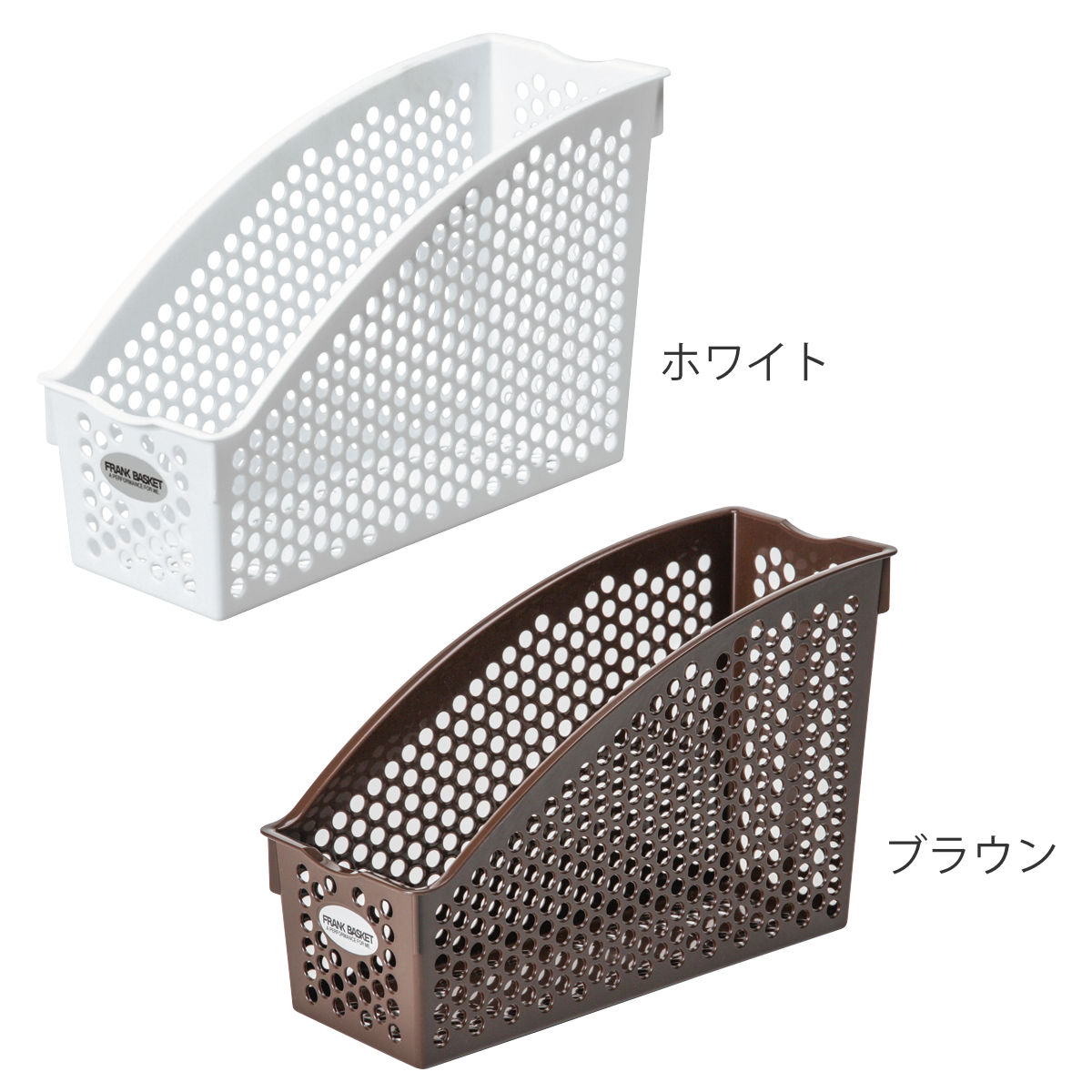 収納ケース バスケット フランクスタンド A4 ストッカー 幅11×奥行27.5×高さ18cm ( プラスチック 収納 かご カゴ 小物入れ 小物 スタンド 通気性 日本製 リビング キッチン ランドリー ストック 書類 デスク デスク整理 ) 【ブラウン】