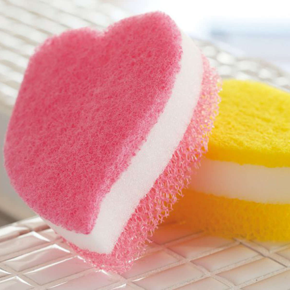 3層構造でしっかり洗える可愛いハートの形のキッチンスポンジ