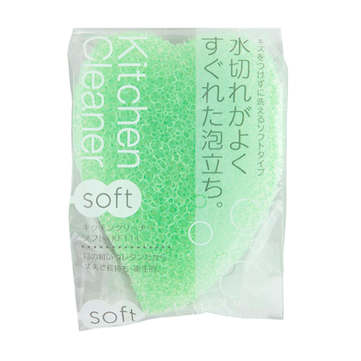 台所用スポンジ キッチンクリーナー ソフト ( スポンジ 日本製 食器洗い キッチン 台所スポンジ 水切れ ハート型 食器用スポンジ 食器用 お皿 コップ クリーナー 食器スポンジ 速乾 粗目 ウレタン 3層 ) 【グリーン】
