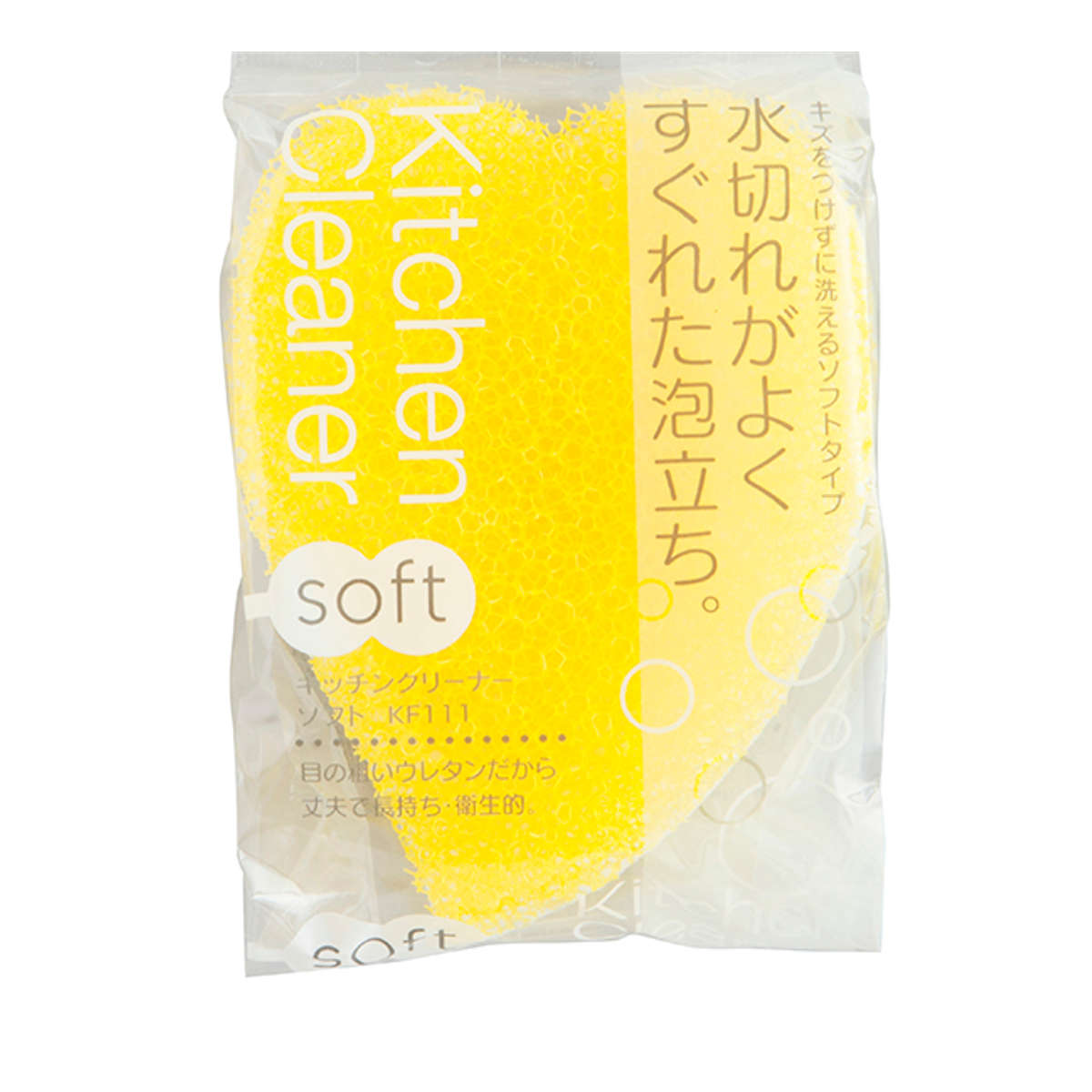 目の粗いウレタン、洗剤含みの良いウレタン、特殊粒子加工のナイロン不織布を組み合わせた3層構造で、汚れをしっかり落とします。キズをつけずに洗えるやさしいソフトタイプのスポンジです。