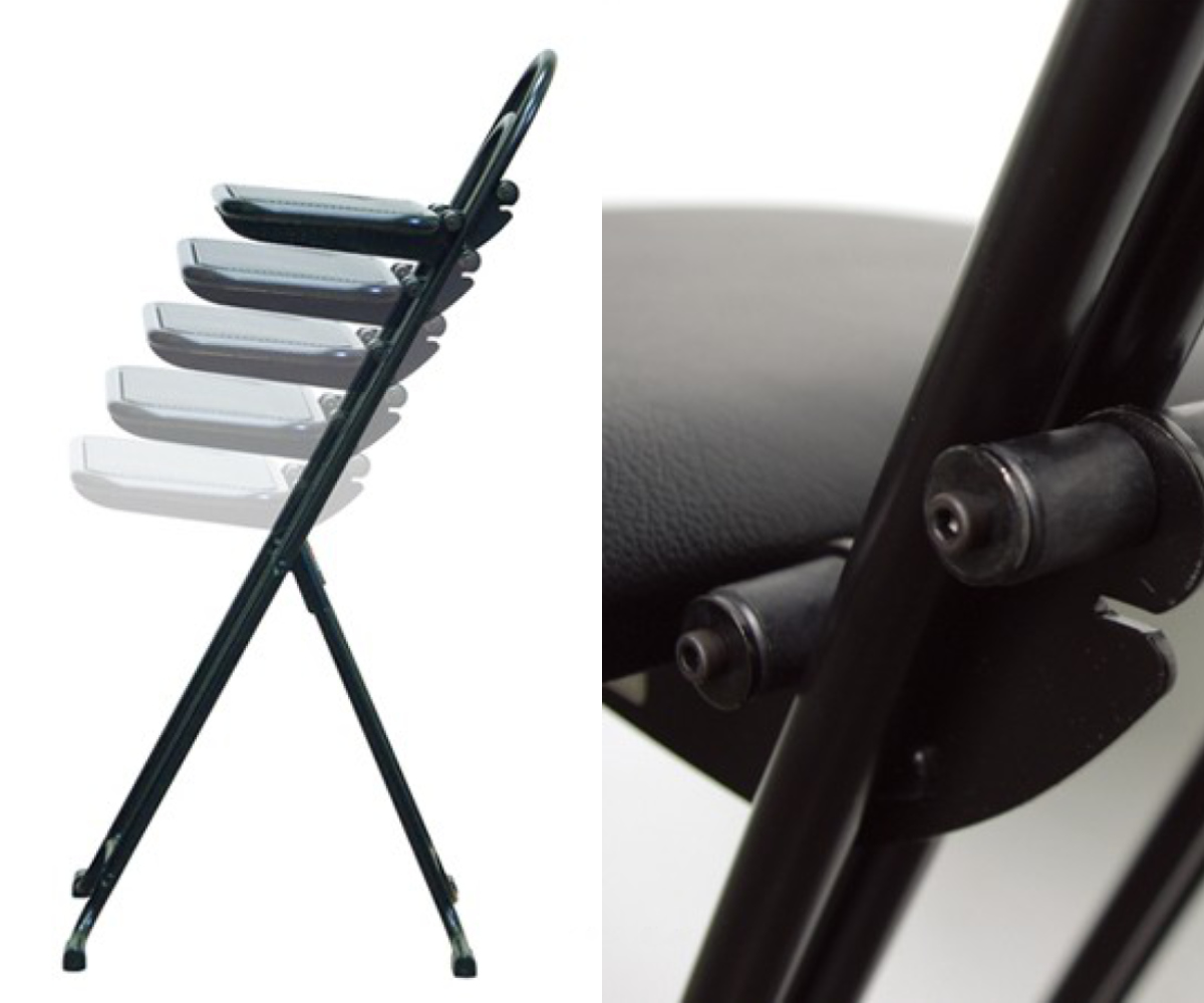 独自のスライド機構で無段階の高さ調整が可能なフォールディングチェアです。