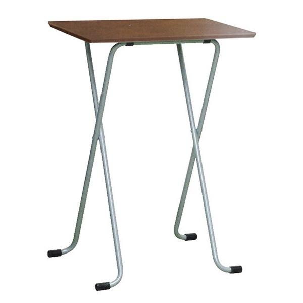 折りたたみテーブル 幅60cm ハイタイプ 角型 高さ85cm ( デスク カウンターテーブル テーブル 折りたたみ 折り畳み 机 ハイテーブル 木製 天然木 日本製 完成品 四角 フォールディングテーブル パソコンデスク 省スペース ) 【ダークブラウン/シルバー】