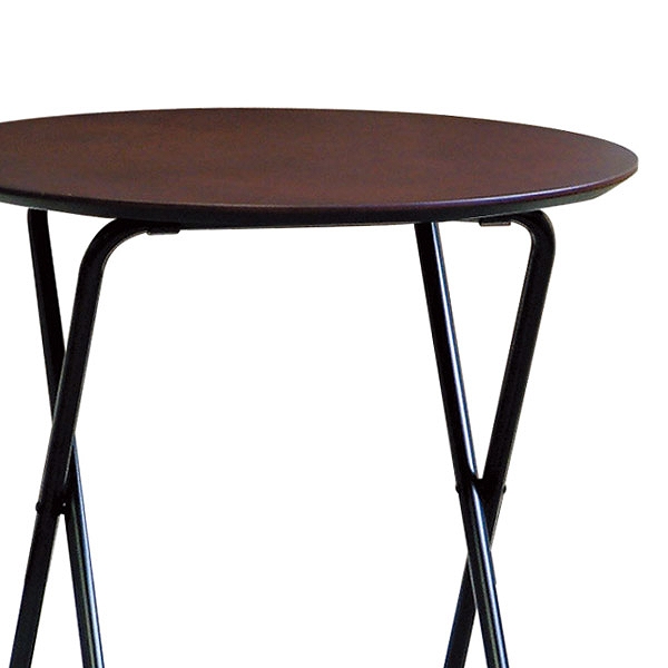 折りたたみテーブル 直径60cm 円形 日本製 ( デスク テーブル 折りたたみ 折り畳み 机 丸 木製 天然木 高め ハイテーブル 作業台 コーヒーテーブル フォールディングテーブル パソコンデスク 省スペース ) 【ダークブラウン/シルバー】
