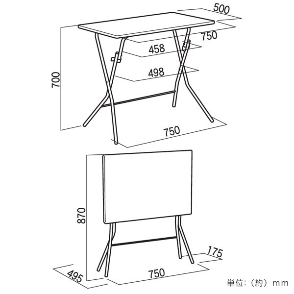 折りたたみテーブル 幅75cm スタンドタッチテーブル 高さ70cm ( 折りたたみ テーブル 高め 机 自立 日本製 完成品 隙間収納 ワンタッチ開閉 長方形 補助テーブル 折りたたみデスク ミニデスク 簡易テーブル )