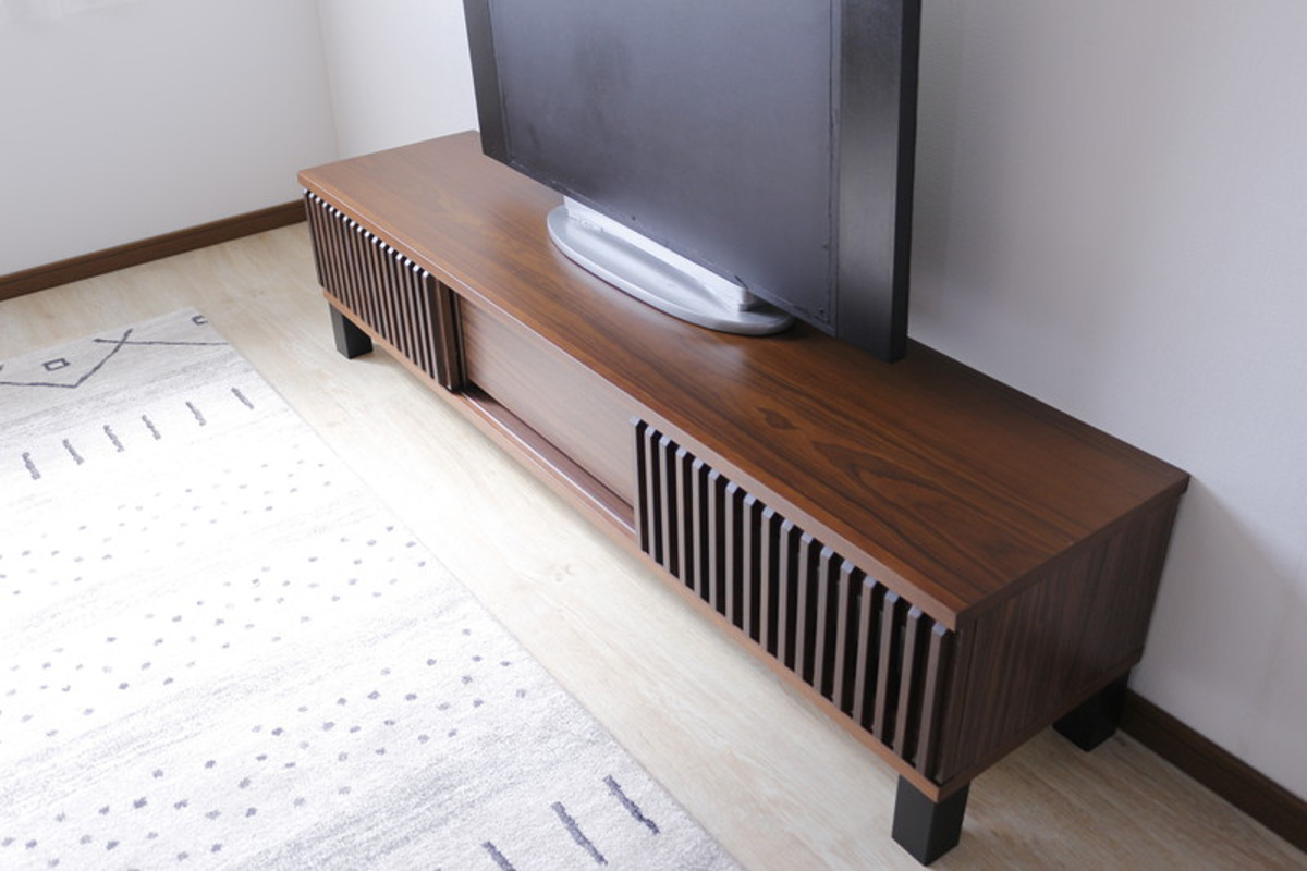 環境に配慮したFSC認証を取得した天然木工芸突板を使用したテレビボードです。前板のルーバーデザインが圧迫感を軽減し、お部屋を優しい雰囲気にコーディネートしてくれます。背面は化粧仕上げが施され、細部まで手を抜かず、丹精込めて製造されています。