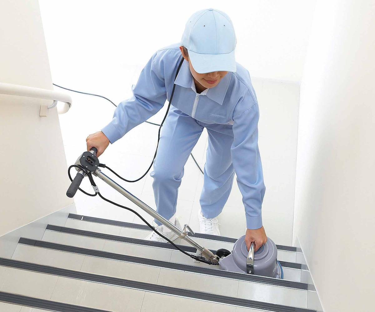 商店・事務所・学校・ホテル・工場などの床面に、幅広い用途でお使いいただけます。電源コードが10メートルと長めなので、広範囲のお掃除をする際にも作業がしやすく便利にお使いいただけます。