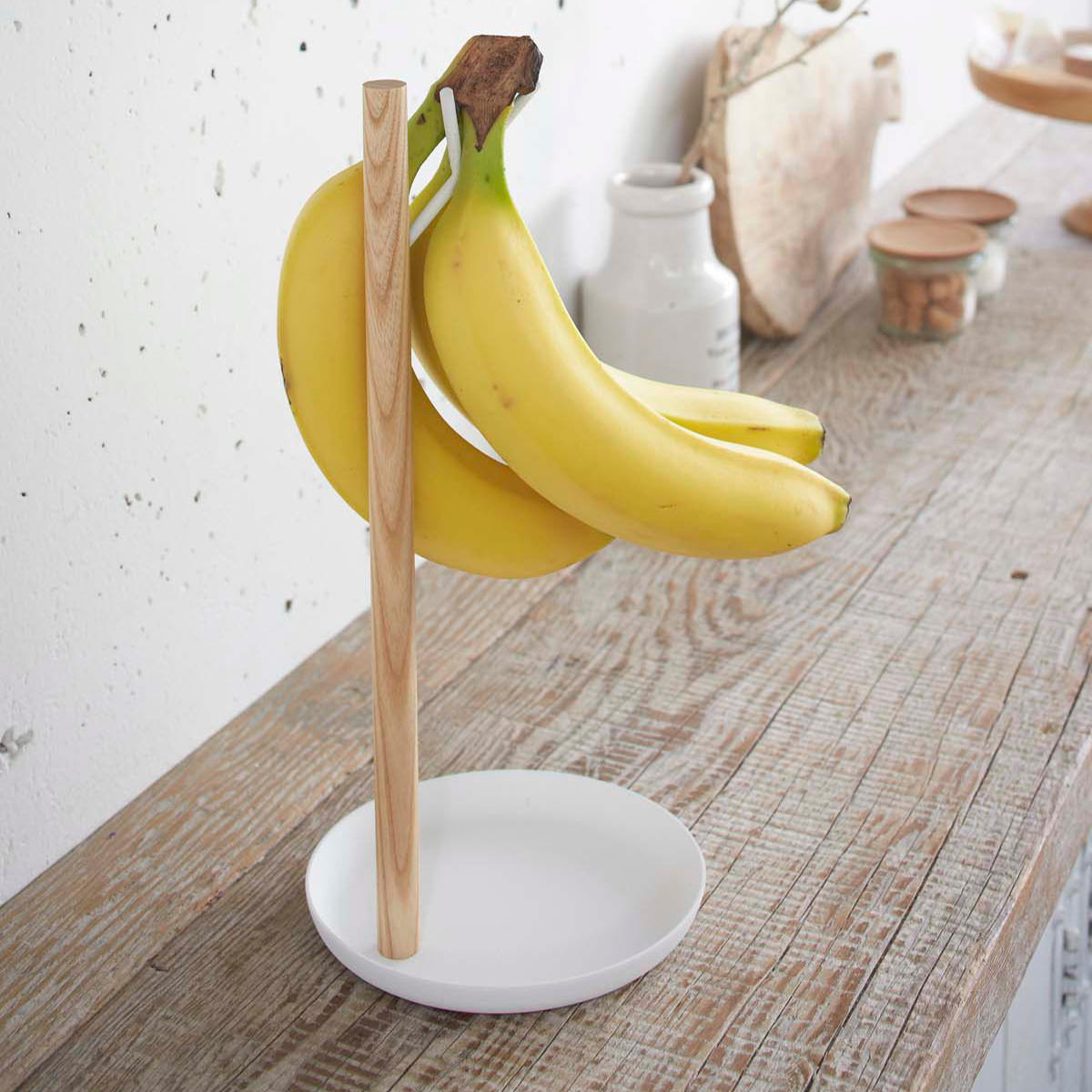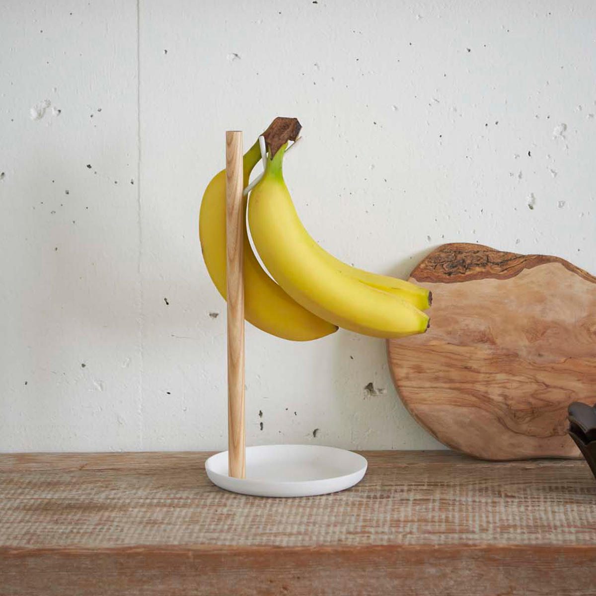 白いスチールと天然木の組み合わせが美しいバナナスタンド