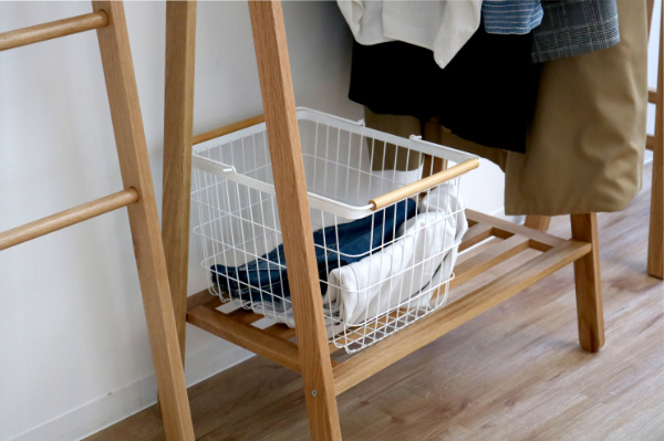衣類収納用バスケットとしても使い勝手がよく、人目に付くところに出しておいても空間をおしゃれに見せられます。