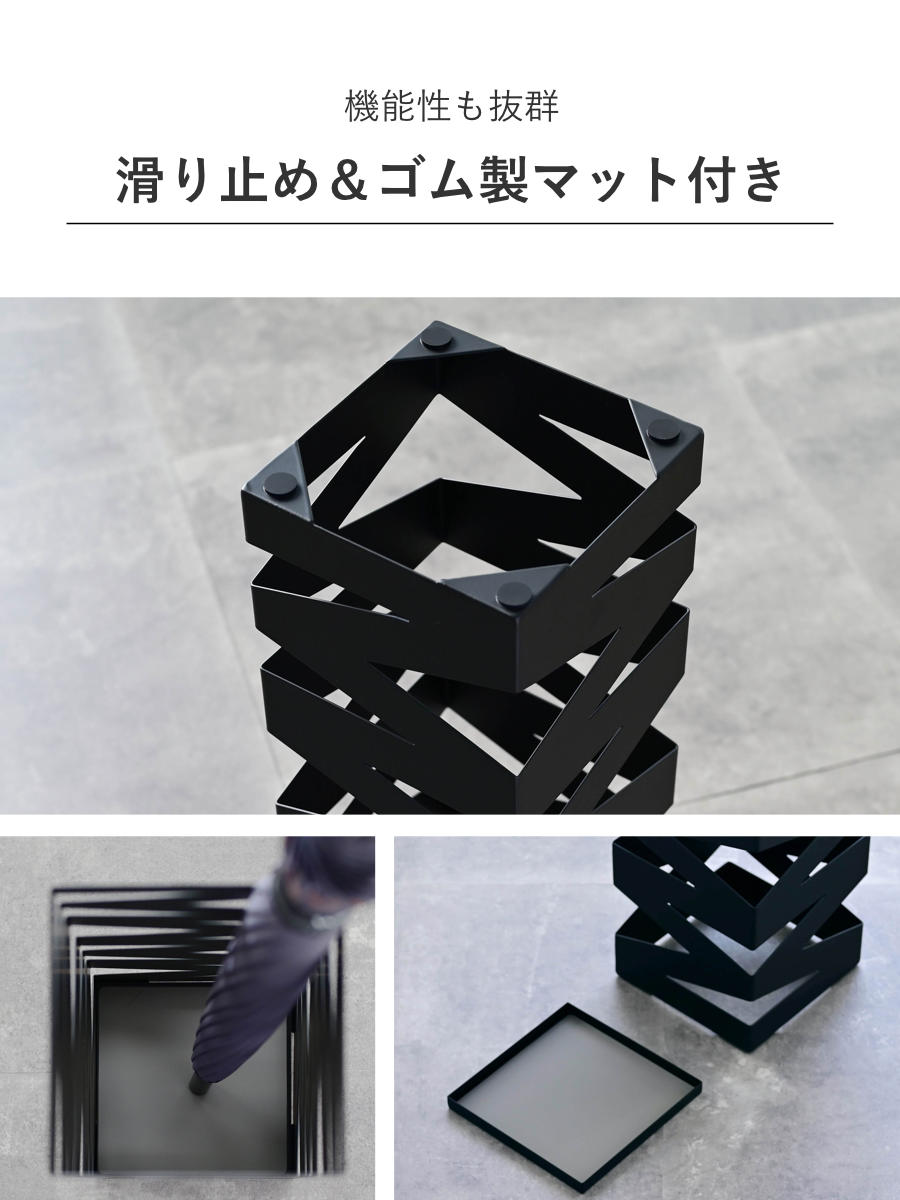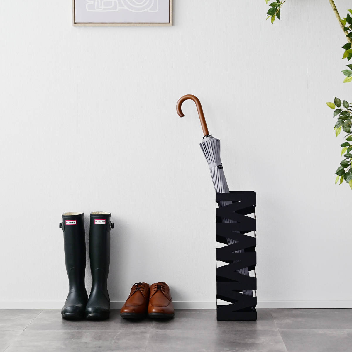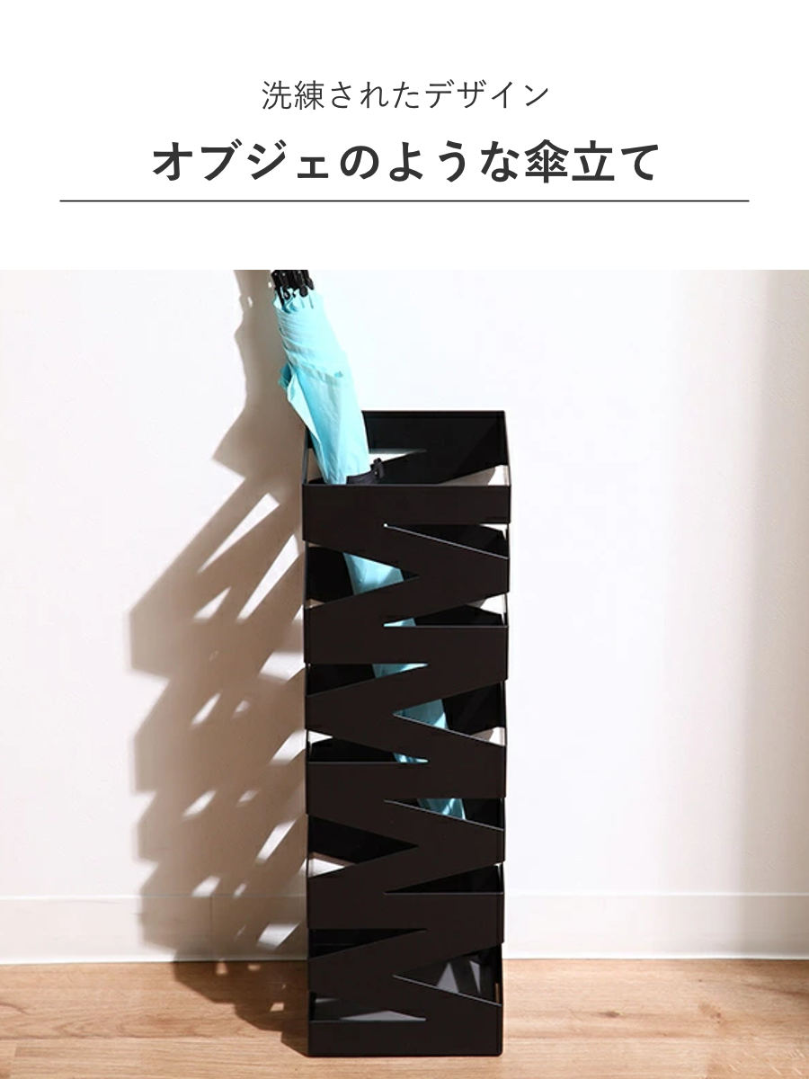 モダンアートのような洗練されたデザインのアンブレラスタンドです。エントランスを上品に彩ってくれるオブジェのような傘立てです。晴れた日に映し出される影が絵画的で美しいです。また、風を通しやすいデザインなので濡れた傘が乾きやすいのもポイントです。
