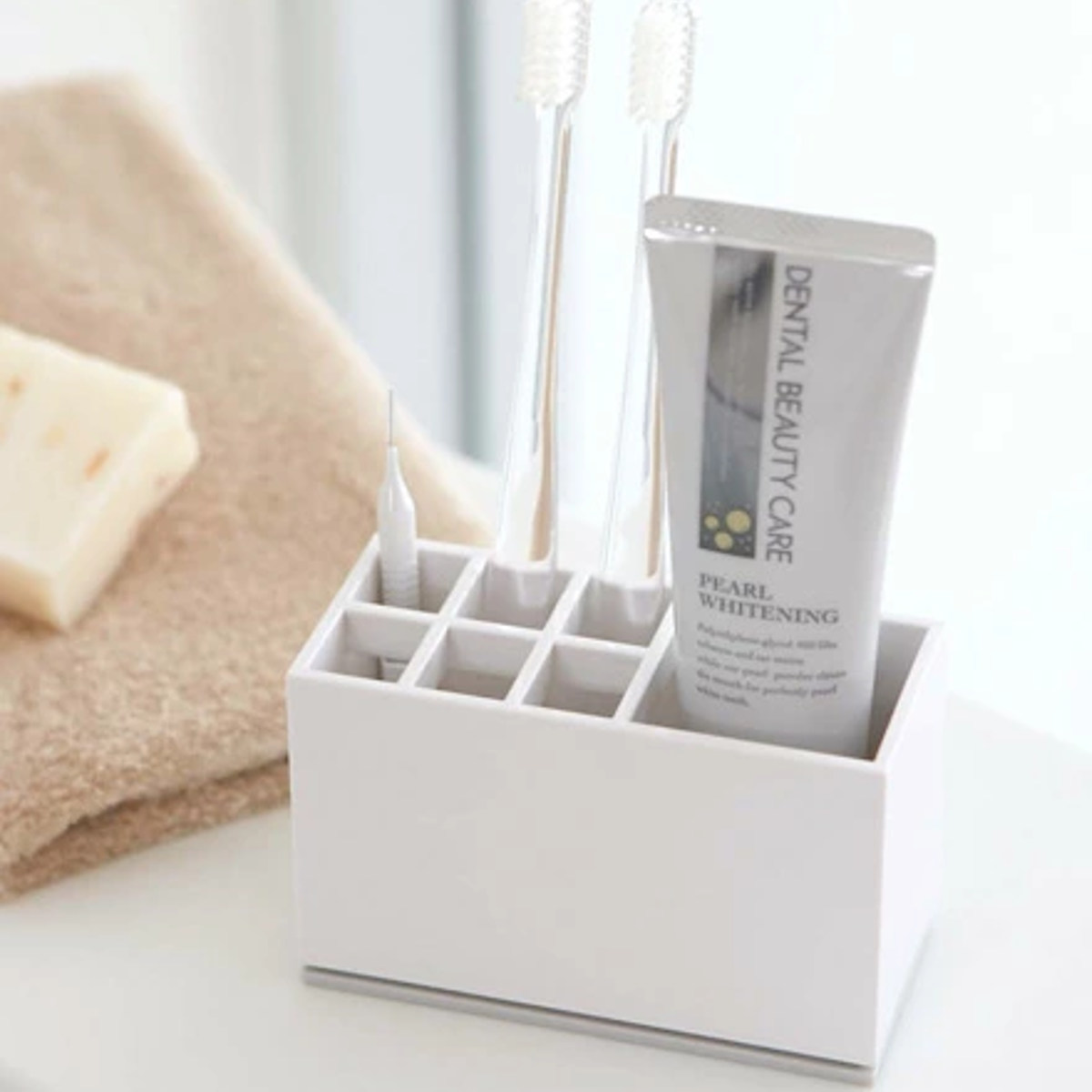 歯ブラシ・歯間ブラシ・歯みがきチューブをまとめて収納できます。シンプルな設計でお手入れしやすく、いつも清潔に使用できます。