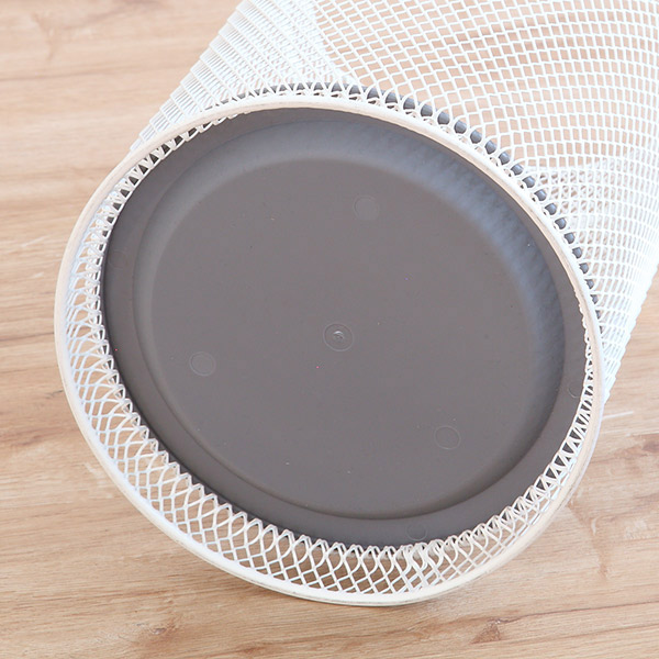 | 取り外し可能な受け皿 取り外し可能な受け皿が付いているので、汚れてもお手入れが簡単です。 | 底面 下部メッシュのくぼみに受け皿を乗せるようになっています。受け皿は床に直接触れないため、通気性が抜群です。 |
