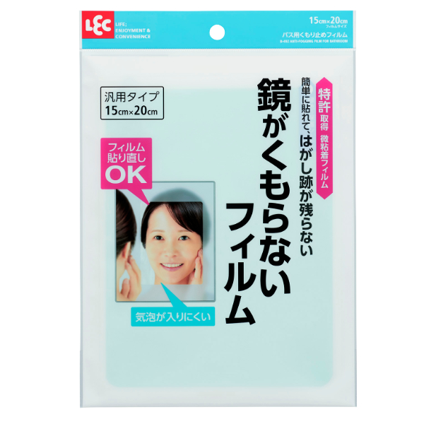 ●フィルムの表面を濡らすことで、鏡やガラス面のくもり止めの役割を果たすフィルムです。