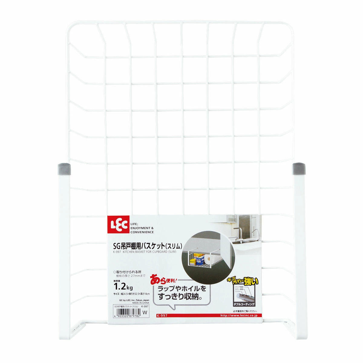 キッチンバスケット 吊戸棚用バスケット スリム ( 収納ラック 戸棚下収納 吊り下げラック 吊り戸棚下 収納 バスケット ワイヤーバスケット かご 小物収納 キッチン シンク上 フック 差し込み ホワイト 幅24.5cm )