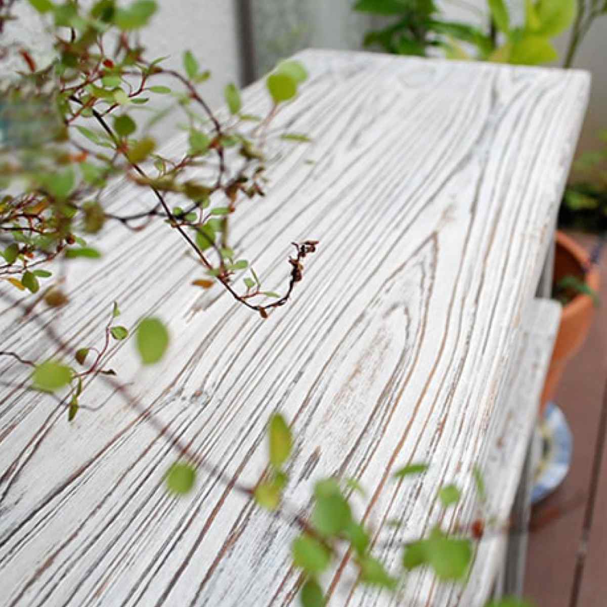 天然杉を丁寧に焼き上げ、さらにホワイトで塗装。その上から表面を削り出すことで、焼杉ならではの深い木目を美しく際立たせました。一手間も二手間もかけたこの仕上げは、アンティーク家具のような風合いと、ナチュラルで優しいシャービック感を両立します。