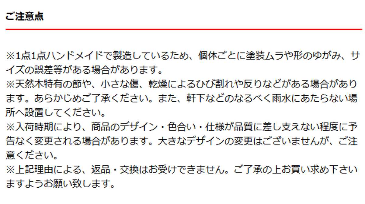 ※天然木特有の節や、小さな傷、乾燥によるひび割れや反りなどがある場合があります。あらかじめご了承ください。また、軒下などのなるべく雨水にあたらない場所へ設置してください。