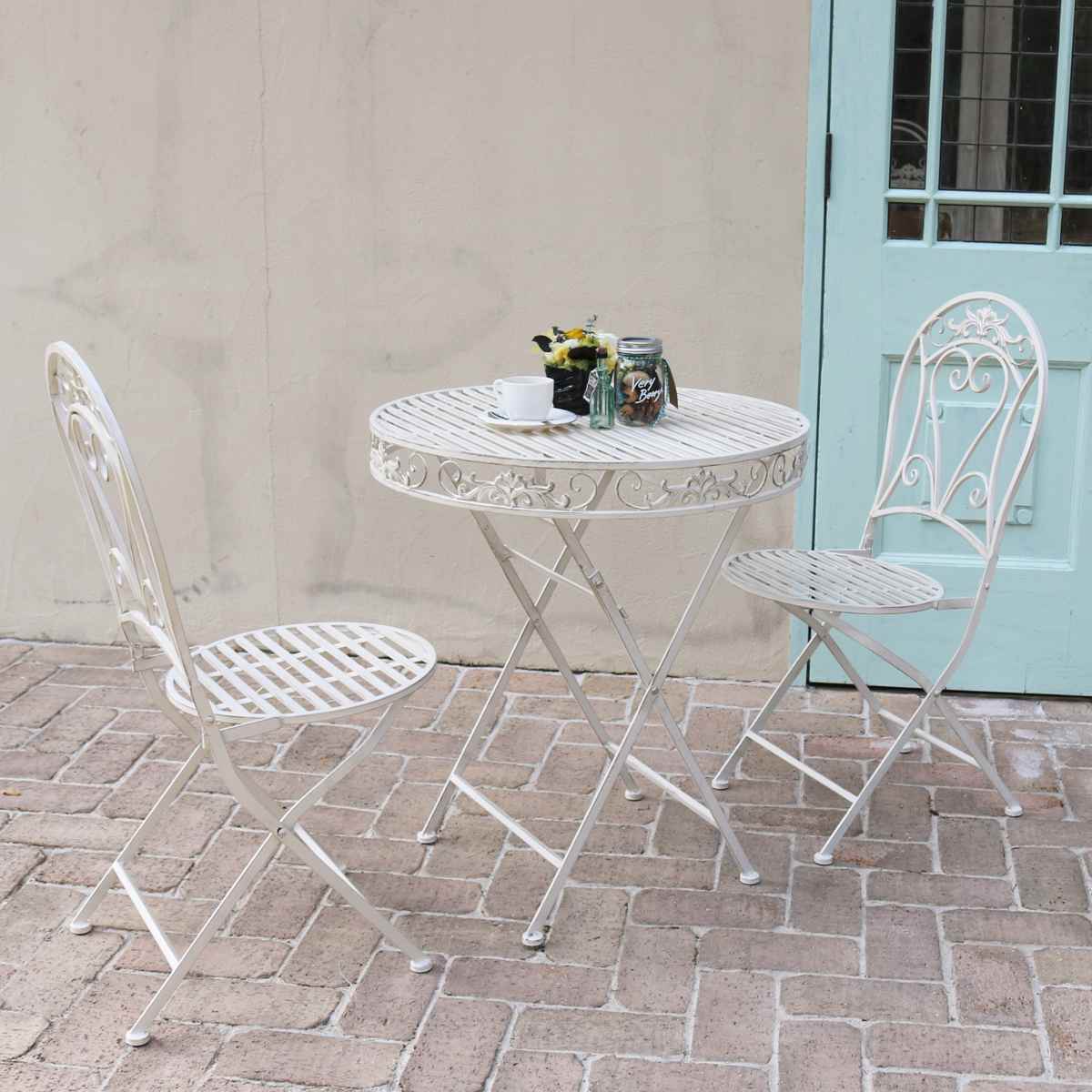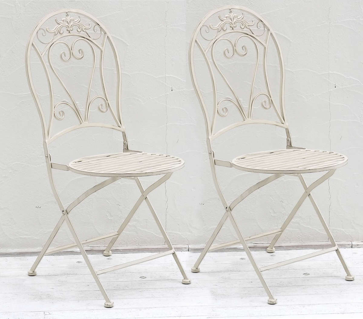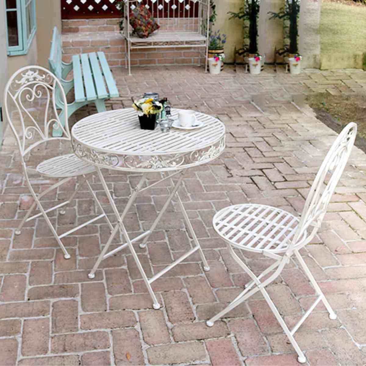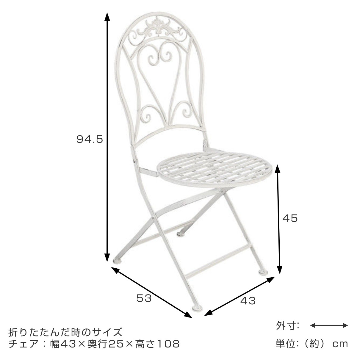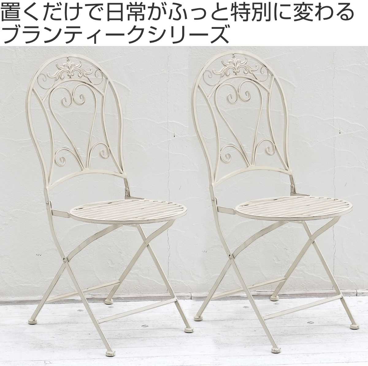 チェア ブランティーク ホワイトアイアンチェア 2脚セット ( テーブル ガーデン 庭 折りたたみ 椅子 カフェチェア 折りたたみチェア カフェ バルコニー テラス アンティーク風 2脚 セット )
