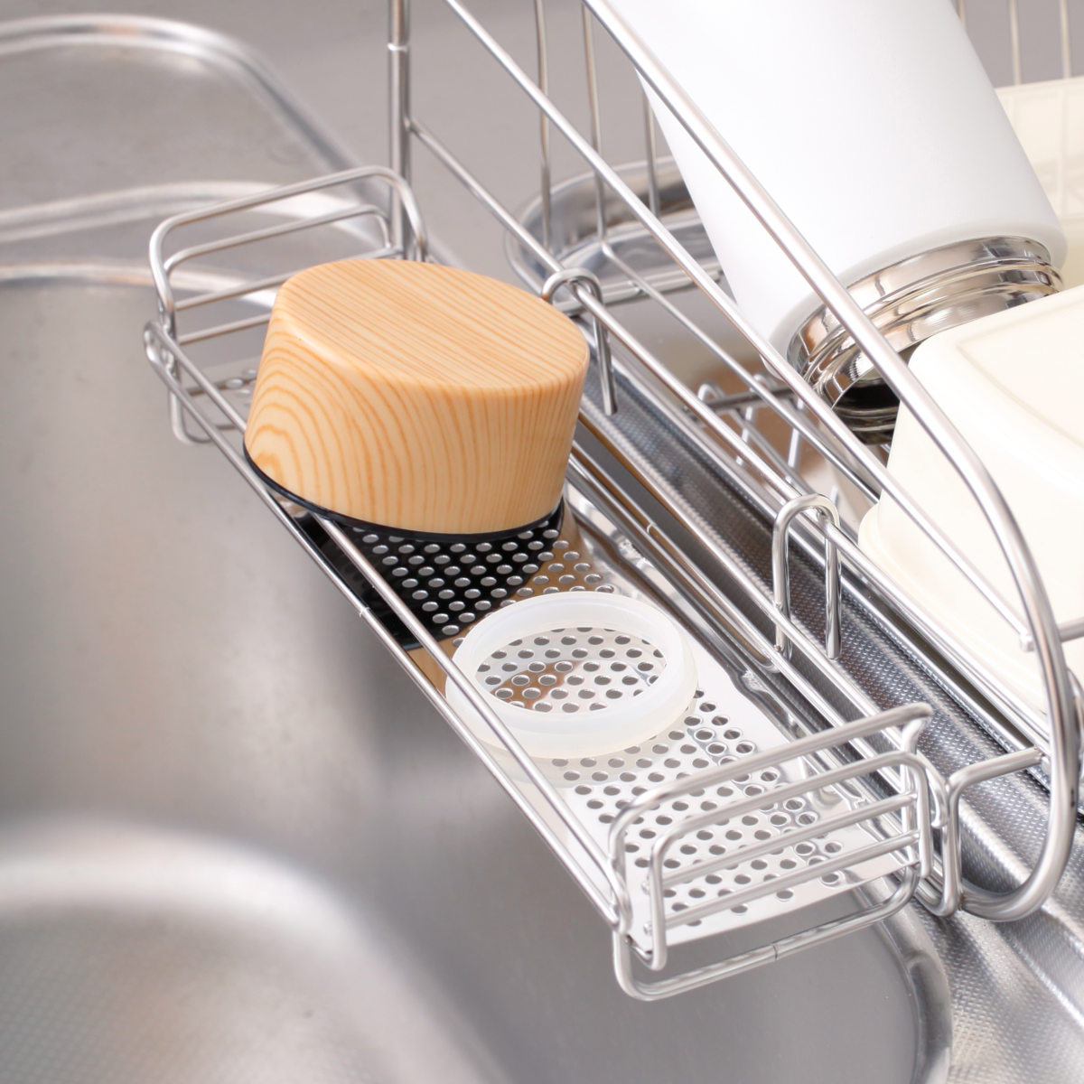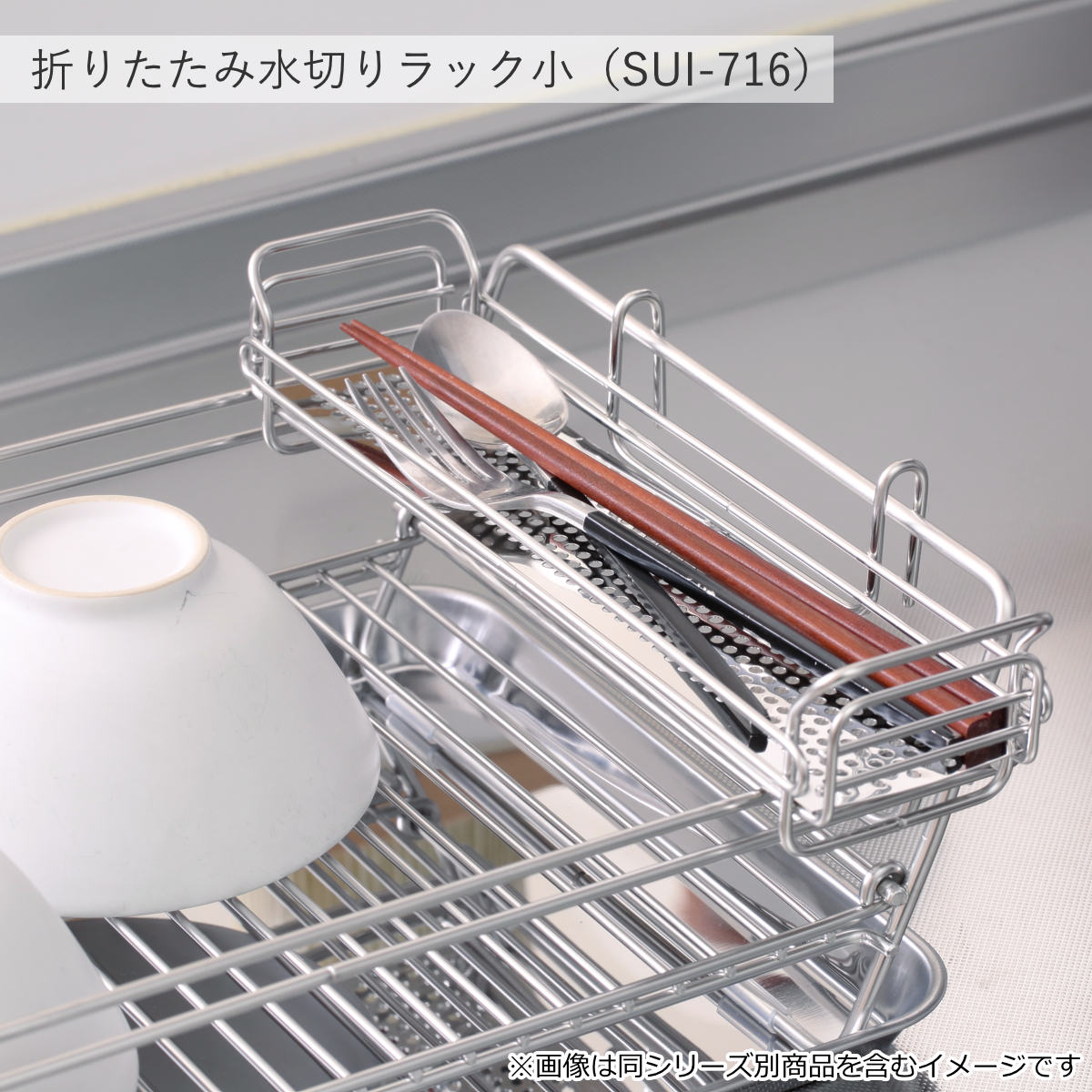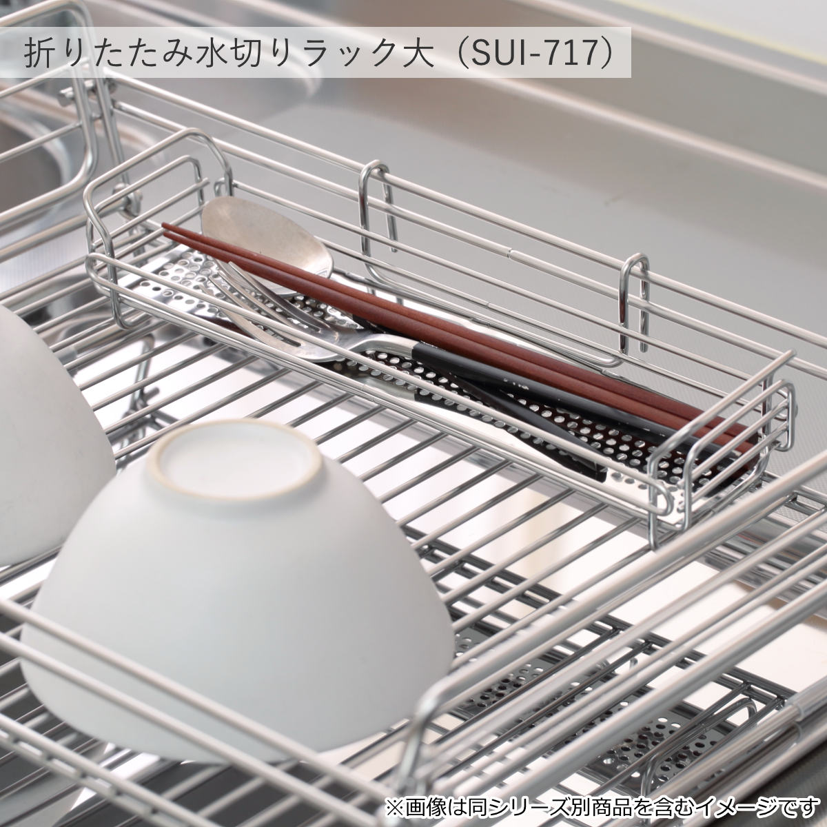 SUIマイスターシリーズの水切りかご(SUI-714~SUI-717)に掛けて使えるマルチポケットです。水切りかごに引っ掛けるだけで簡単に水切りスペースを増やすことができます。