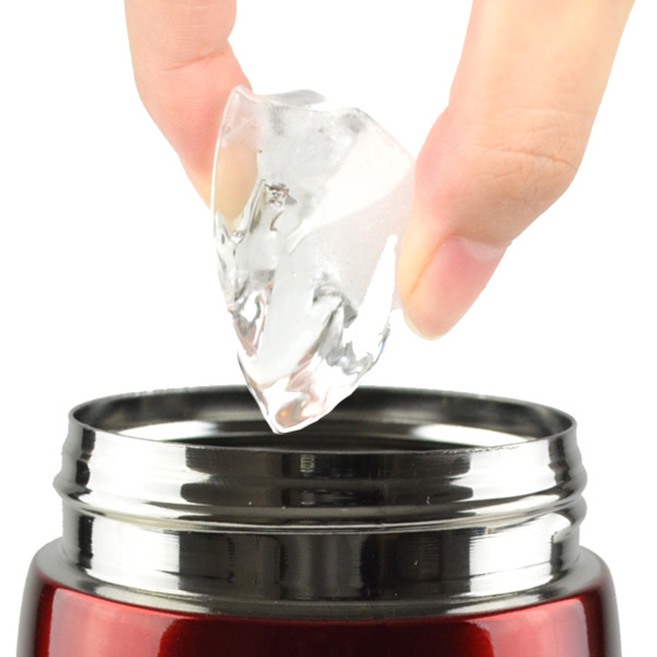ソフトな口当たりの樹脂製の飲み口は、フラットな形状なので360度どこからでも飲めるようになっています。また、氷止めの役割りと、熱い飲み物が勢い良く出にくい構造になっています。