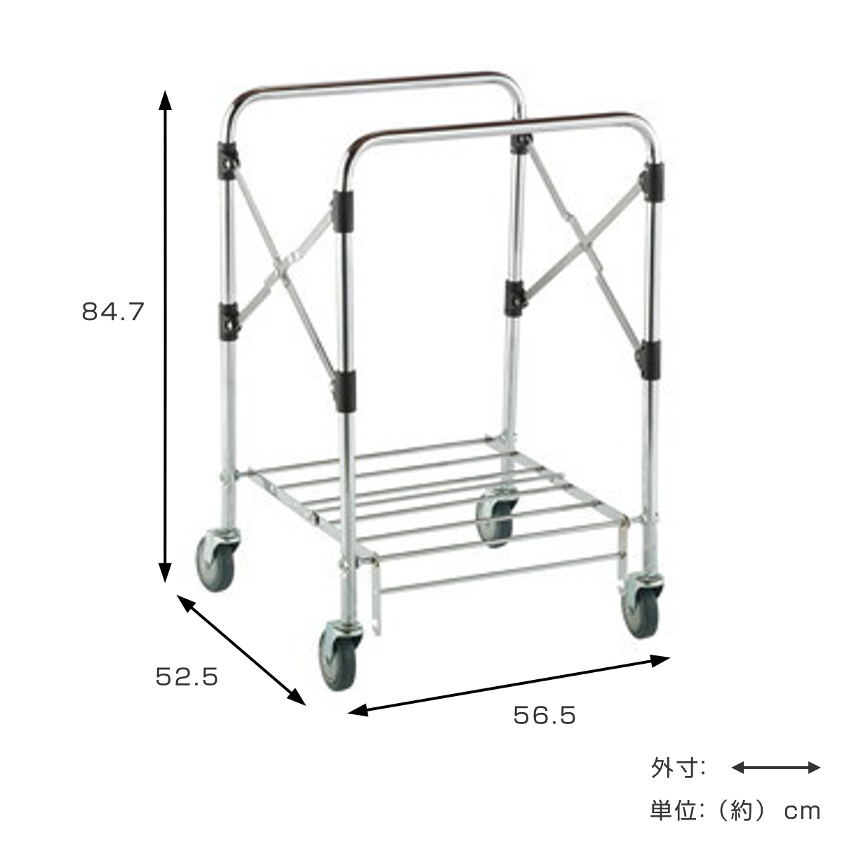 | サイズ | 約 幅56.5×奥行52.5×高さ84.7(cm) 折りたたみ時:厚さ約16cm キャスター:約 直径10cm |