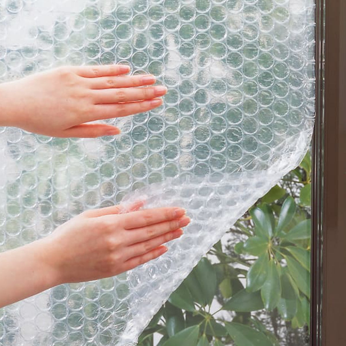 約7mm厚の3層シートが空気層をつくり、窓から入り込む冷気をシャットアウトします。目隠し効果でプライバシーも保護します。水貼りタイプできれいにはがせるので、賃貸にお住まいのかたにもオススメです。