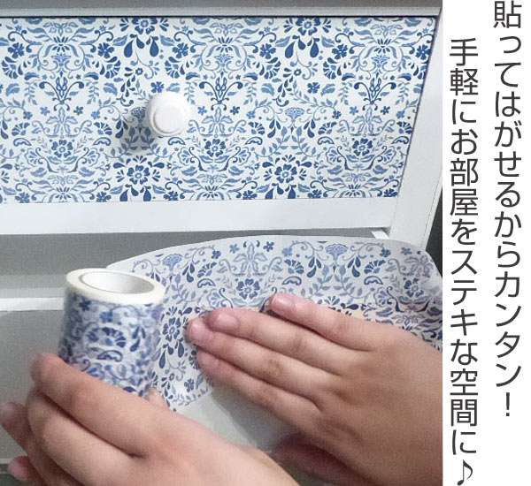 はがせるから気軽に可愛く模様替え♪ダマスク柄がおしゃれな、幅広タイプのマスキングテープです。貼ってはがせるので、賃貸のお部屋でも気軽に模様替えが楽しめます♪壁はもちろん、家具・キッチン周り・小物などを自分流にアレンジできます。パーティーの飾り付けにもおすすめです。