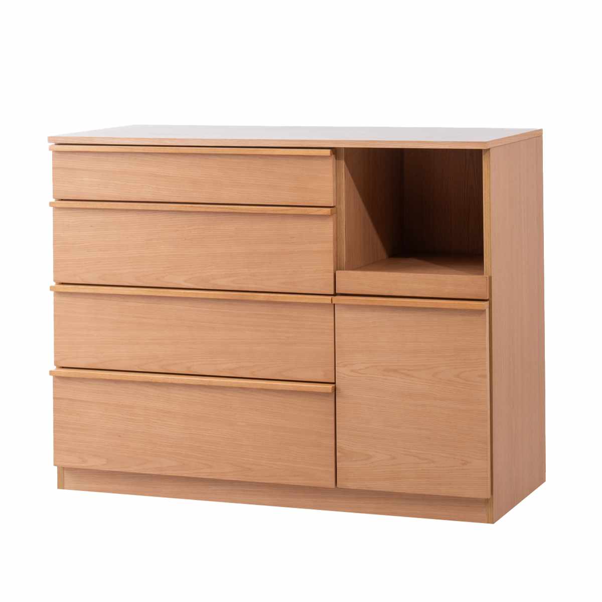 | 材質 | 天板:メラミン化粧繊維板 前板:天然木工芸突板 側板:プリント紙化粧繊維板 仕上げ:ウレタン塗装 |