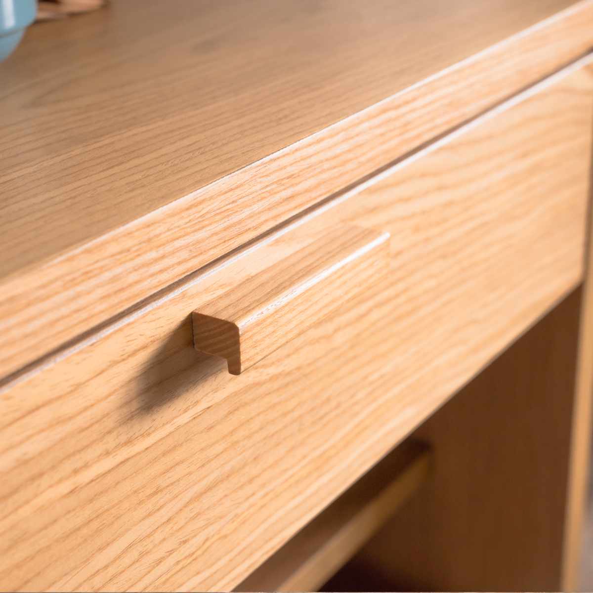 上段には薄型の引出しを備えており、フォークやスプーンなどのカトラリー収納に最適です。下段の深い引出しには、背の高いボトルやストック用品、日用品などを用途に応じて仕分けできます。取り出しやすく、使いたいものがすぐ手に届く快適な収納です。