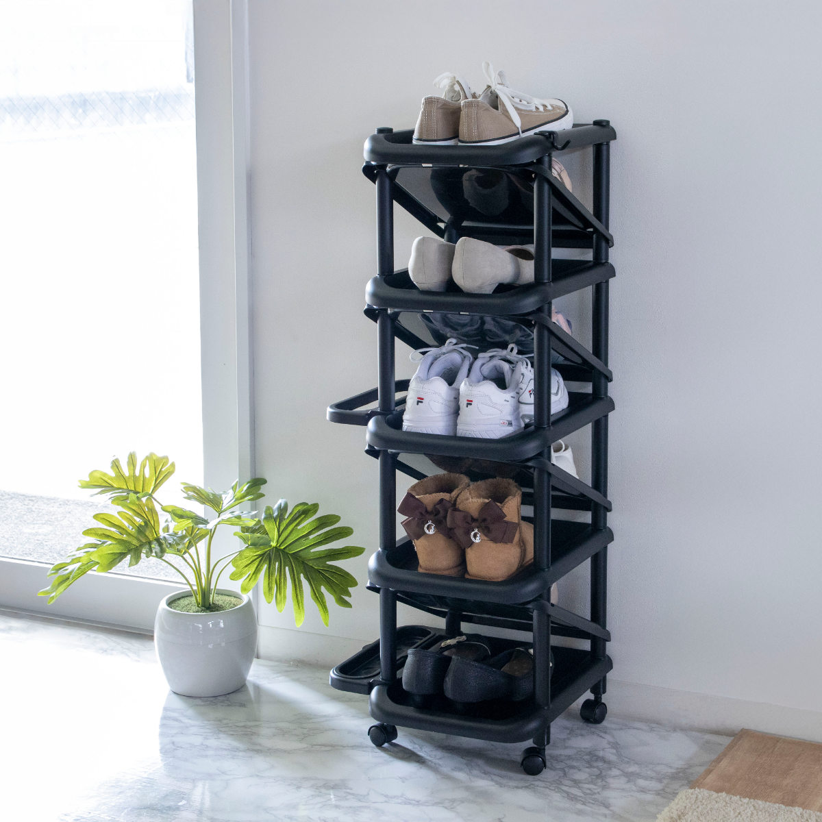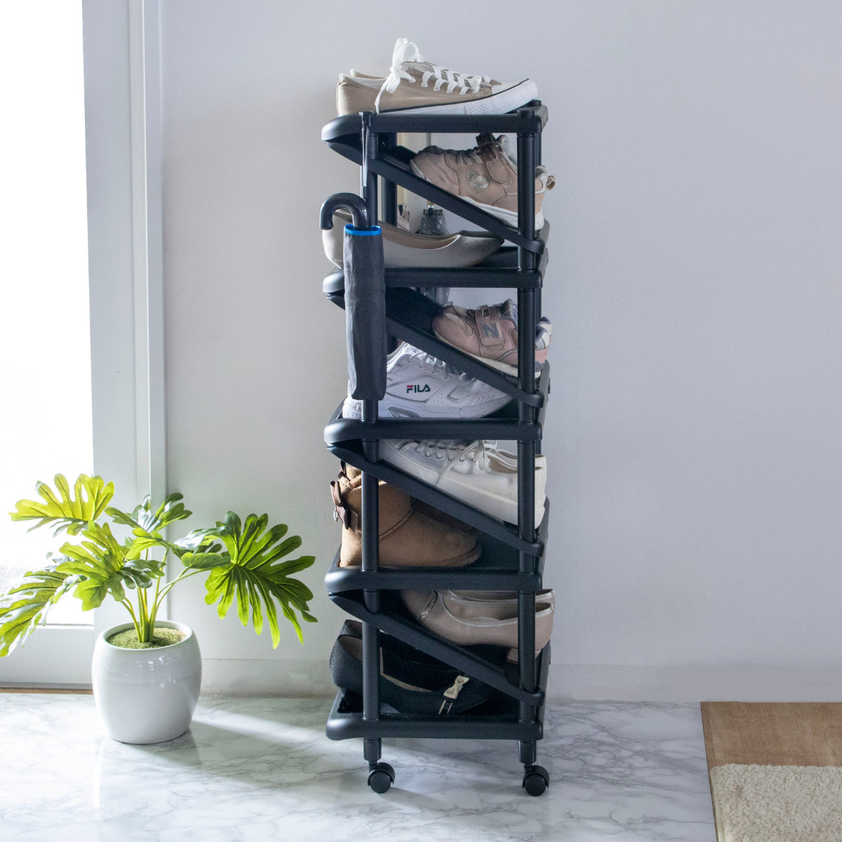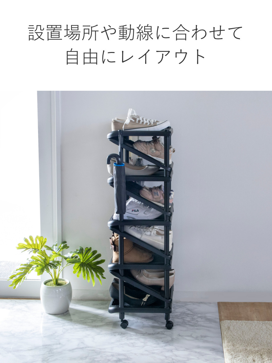 シューズラック 大容量 9段 斜め収納 エタージ キャスター付 ( シューズスタンド 靴収納 下駄箱 靴 収納 ラック 傘立て スリム 簡単 組み立て 玄関 シューズ 傘たて 玄関収納 省スペース シューズボックス )