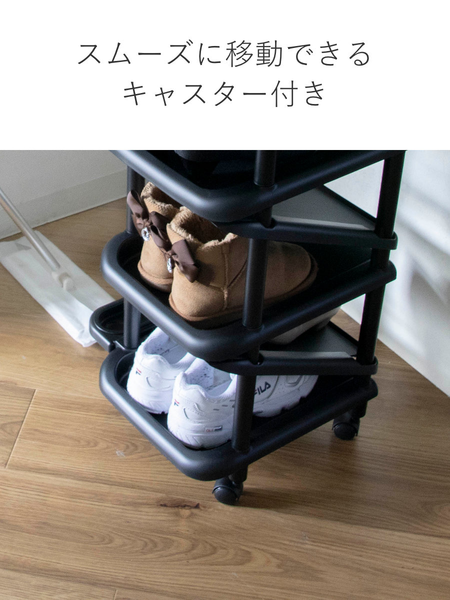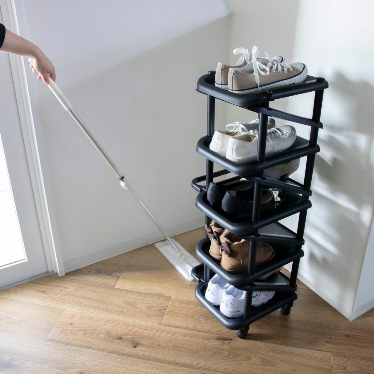 キャスター付きのため、靴を収納したままでもスムーズに移動できます。持ち上げる必要がなく、掃除の際もサッと動かせて床のお手入れが簡単です。玄関の模様替えや配置替えもラクに行えます。