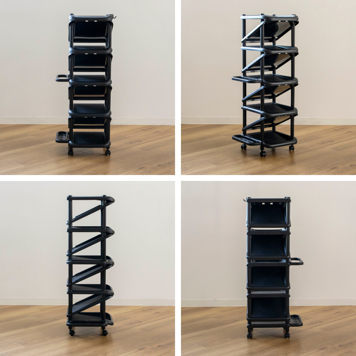傘を収納できるフレームと水受け皿は、左右どちらにも、上下お好みの位置に取り付け可能です。長傘や折りたたみ傘など、収納したいアイテムに合わせて設置位置を自由に調整できます。
