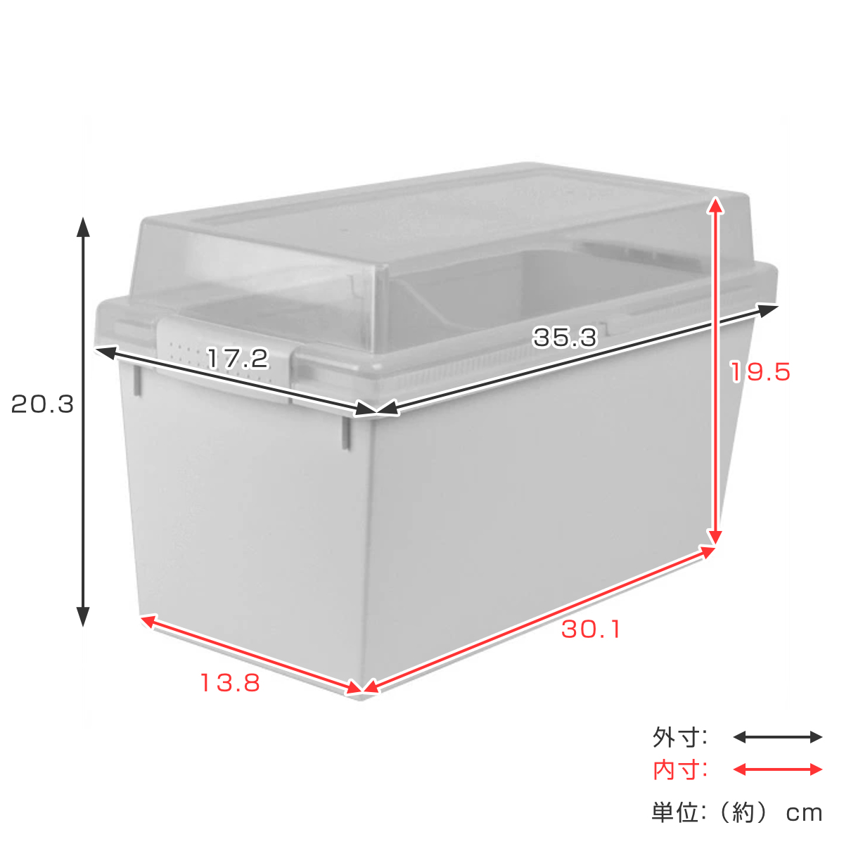 | サイズ | 外寸:約 幅35.3×奥行17.2×高さ20.3(cm) 内寸:約 幅30.1×奥行13.8×高さ19.5(cm) |