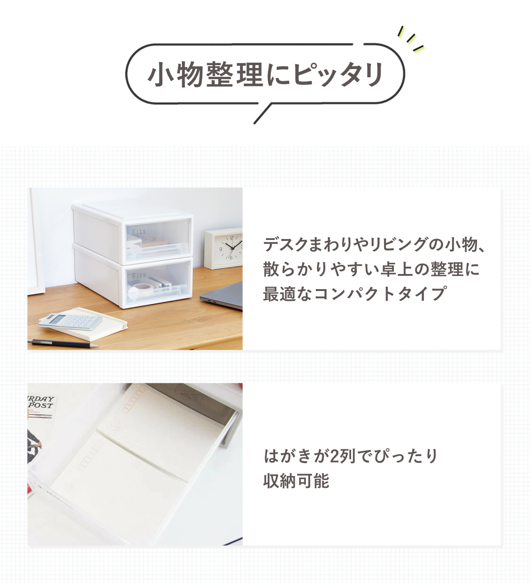 収納ケース Fits フィッツ フィッツケース プチ 引き出し 小物 ( 収納ボックス 収納 ケース 小物収納 幅18.4 奥行27.2 高さ10.2 天馬 小さい 衣装ケース 積み重ね 押し入れ クローゼット収納 引き出し収納 ) 【ホワイトクリア】