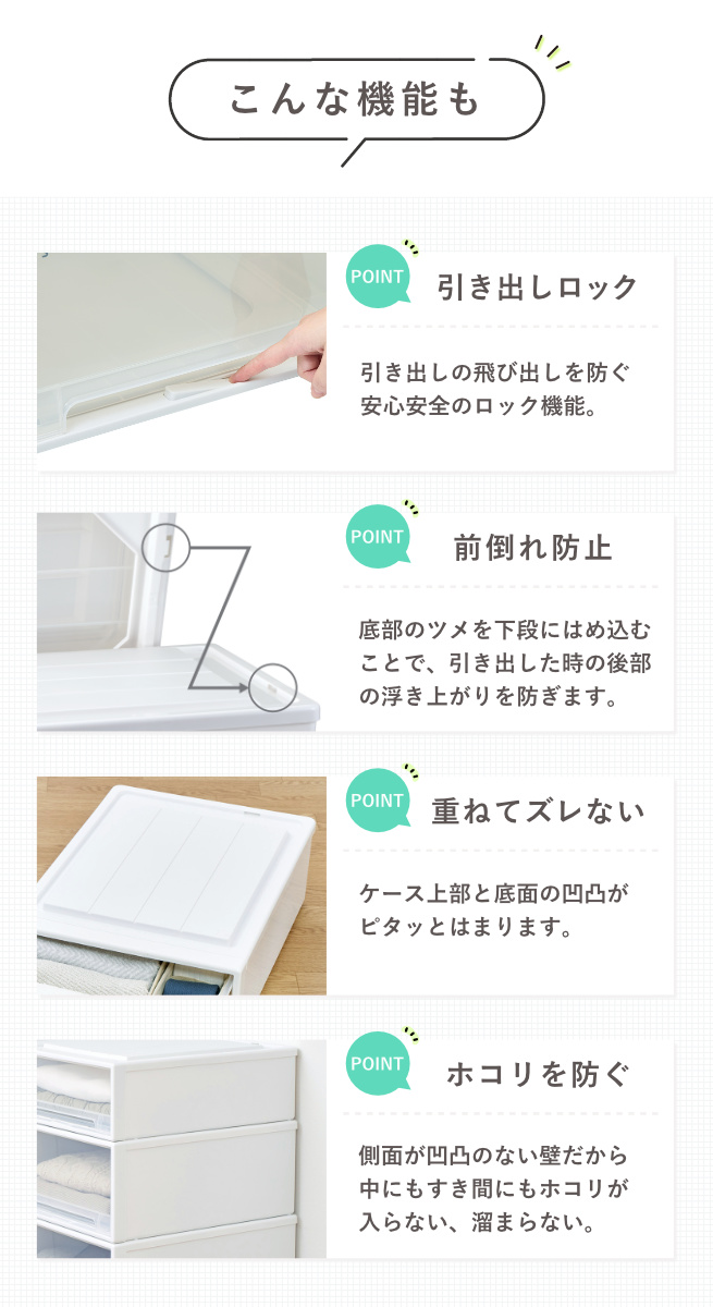 | 備考 | 積み重ね使用:2段まで可能 差込式キャスター対応 1段あたりの収納目安:Yシャツが14枚 |