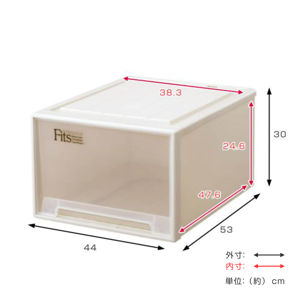 収納ケース Fits フィッツ フィッツケース クローゼット ワイド L-53 4個セット ( 衣装ケース 収納 幅44 奥行53 高さ30 天馬 日本製 ケース 引き出し 収納ボックス プラスチック 積み重ね 押し入れ ) 【ホワイトクリア】