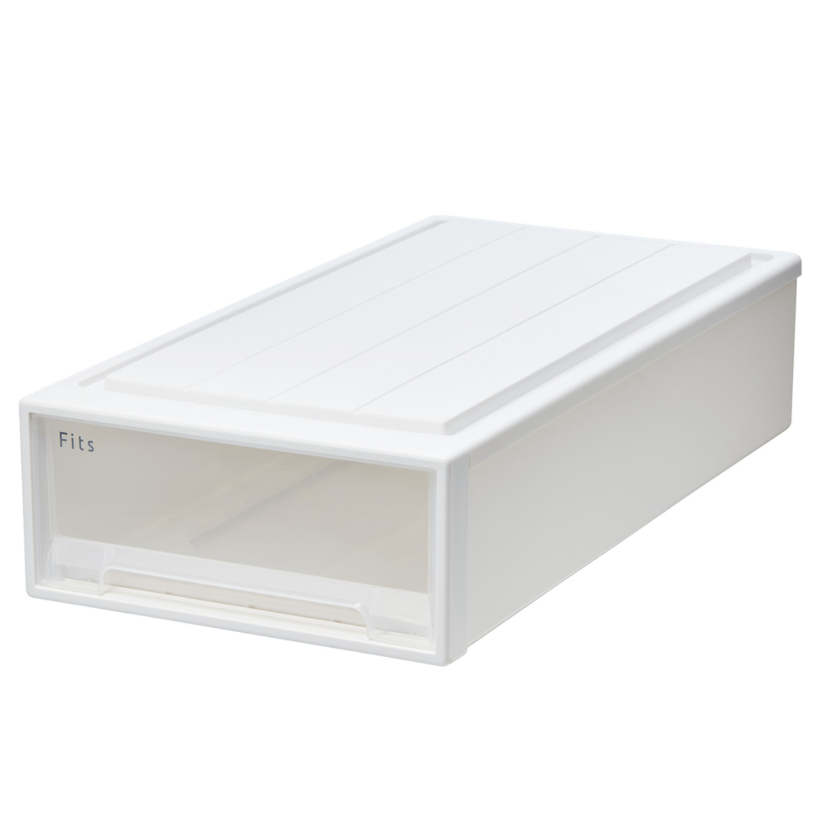 収納ケース Fits フィッツ フィッツケース スリム 引き出し 4個セット 押入れ ( 収納 衣装ケース 押入れ収納 積み重ね 幅39 奥行74 高さ18 天馬 日本製 押し入れ収納ケース 引出し スタッキング 衣類ケース 収納ボックス 浅型 ) 【ホワイトクリア】