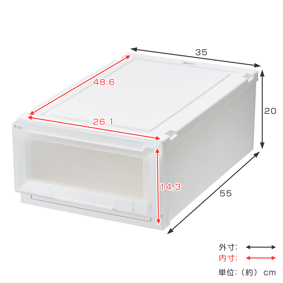 収納ケース 幅35×奥行55×高さ20cm Fits フィッツケース アドバンス 3520 クローゼット ( 収納 収納ボックス 日本製 衣装ケース 天馬 押入れ収納 押入れ 奥行55 幅35 積み重ね スタッキング 引出し ) 【ホワイトクリア】