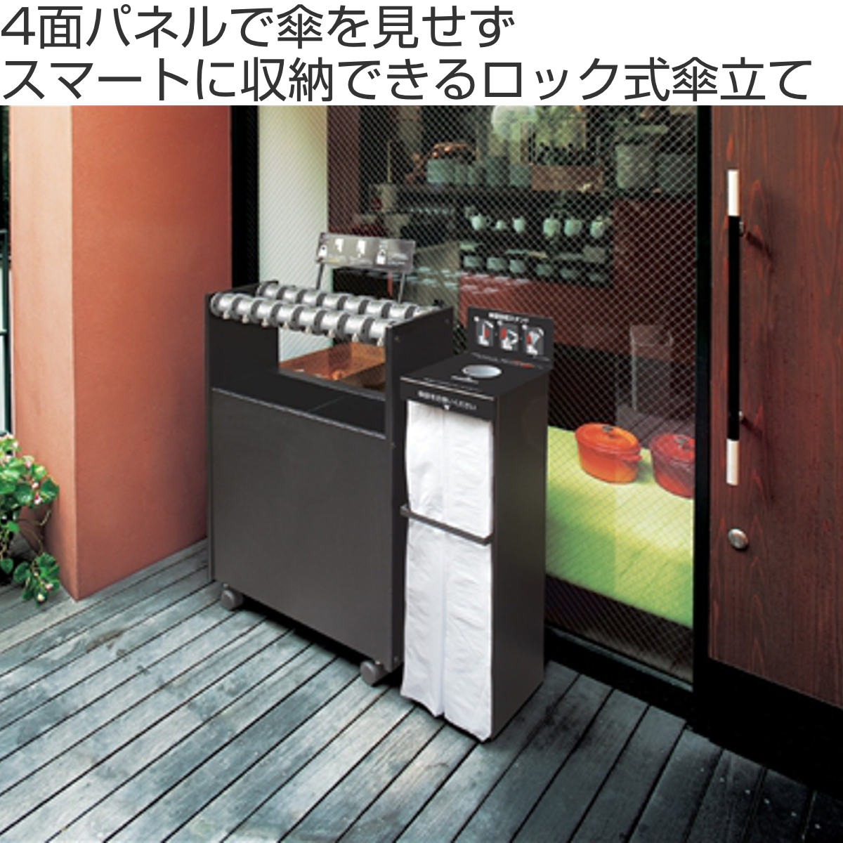 ワンタッチで鍵の開閉ができるカードロック式の傘立てです。デザインもスタイリッシュでどんな玄関にもマッチします。