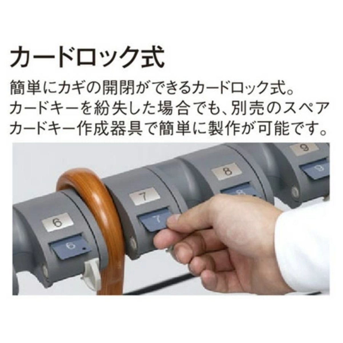 ![]() カードロック傘立て用看板 | ![]() スペアカードキー作成器具 | ![]() スペアカードセット |