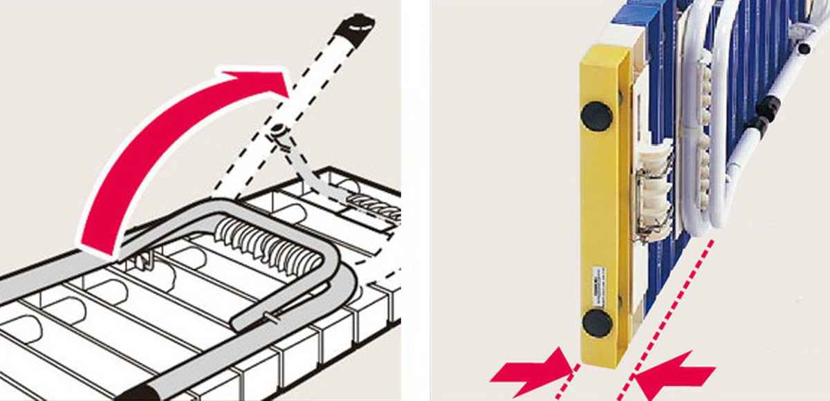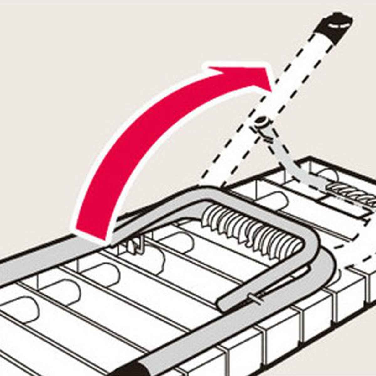| 組み立てカンタン 脚部を起こしてはめ込むだけのシンプルな構造です。工具不要で簡単に組み立てできます。 | 省スペース収納 折りたたむと厚みが10cmとスリムになり、場所を取りません。省スペースで収納が可能です。 |