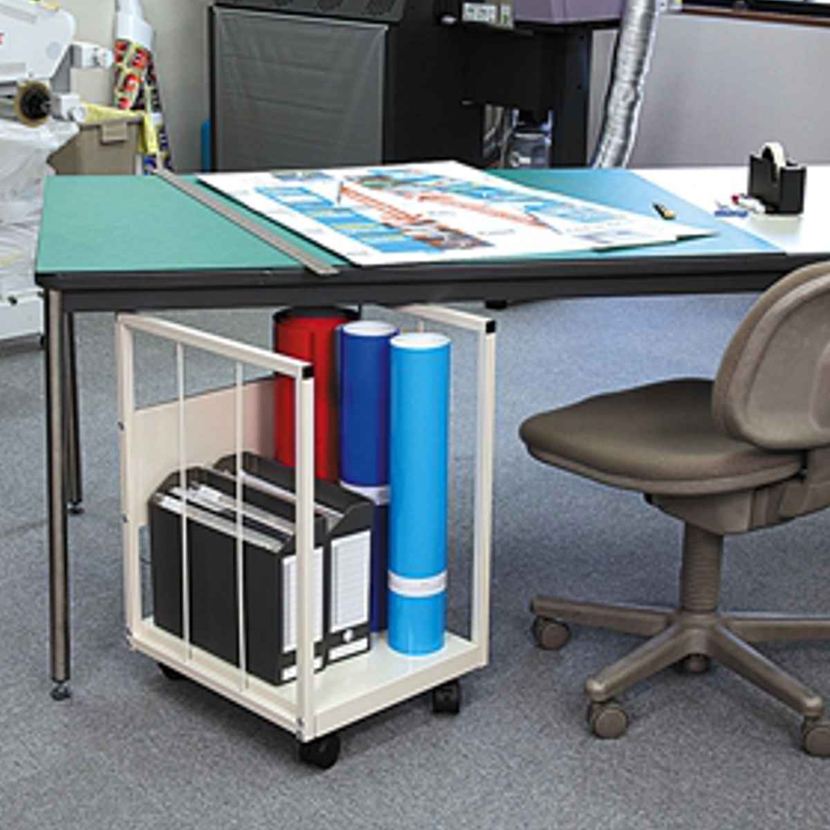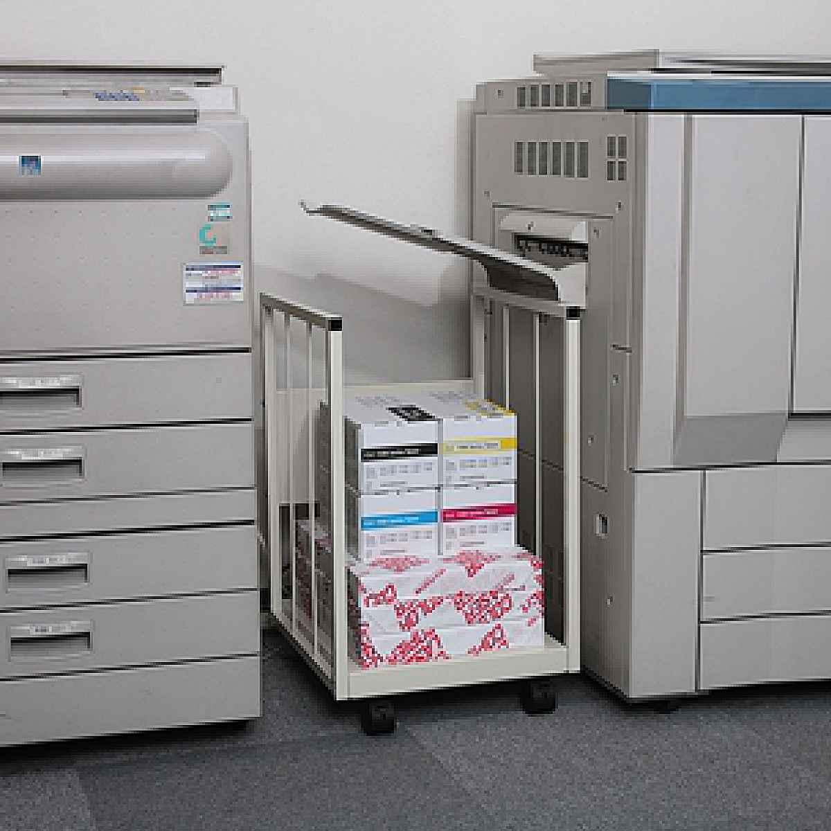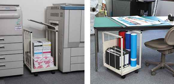 | コピー用紙の補充をラクに 重量のあるコピー用紙を載せて保管できます。簡単に移動できるので、補充作業もスムーズに行えます。 | デスク下に収納できる 高さ40cmなので、デスク下に収納できます。書類や備品を保管でき、移動も簡単にできます。 |