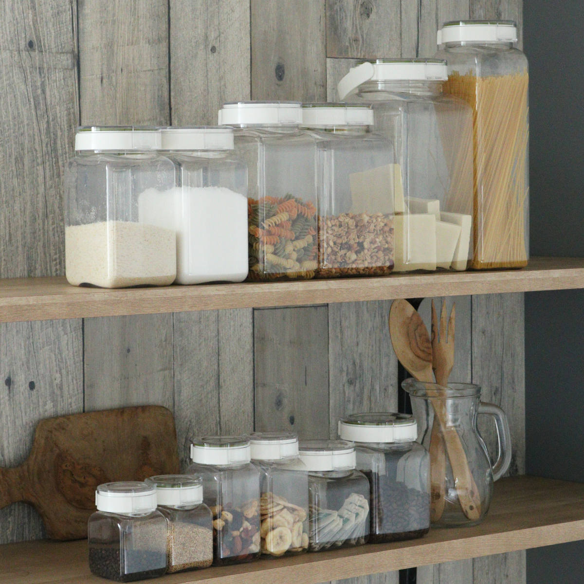 どんな場所にも無駄なく収納できる幅広いサイズ展開。入れたい食材と収納場所に合わせて選ぶことができます。シンプルなデザインなのでサイズ違いを並べてもスッキリしたした印象です。