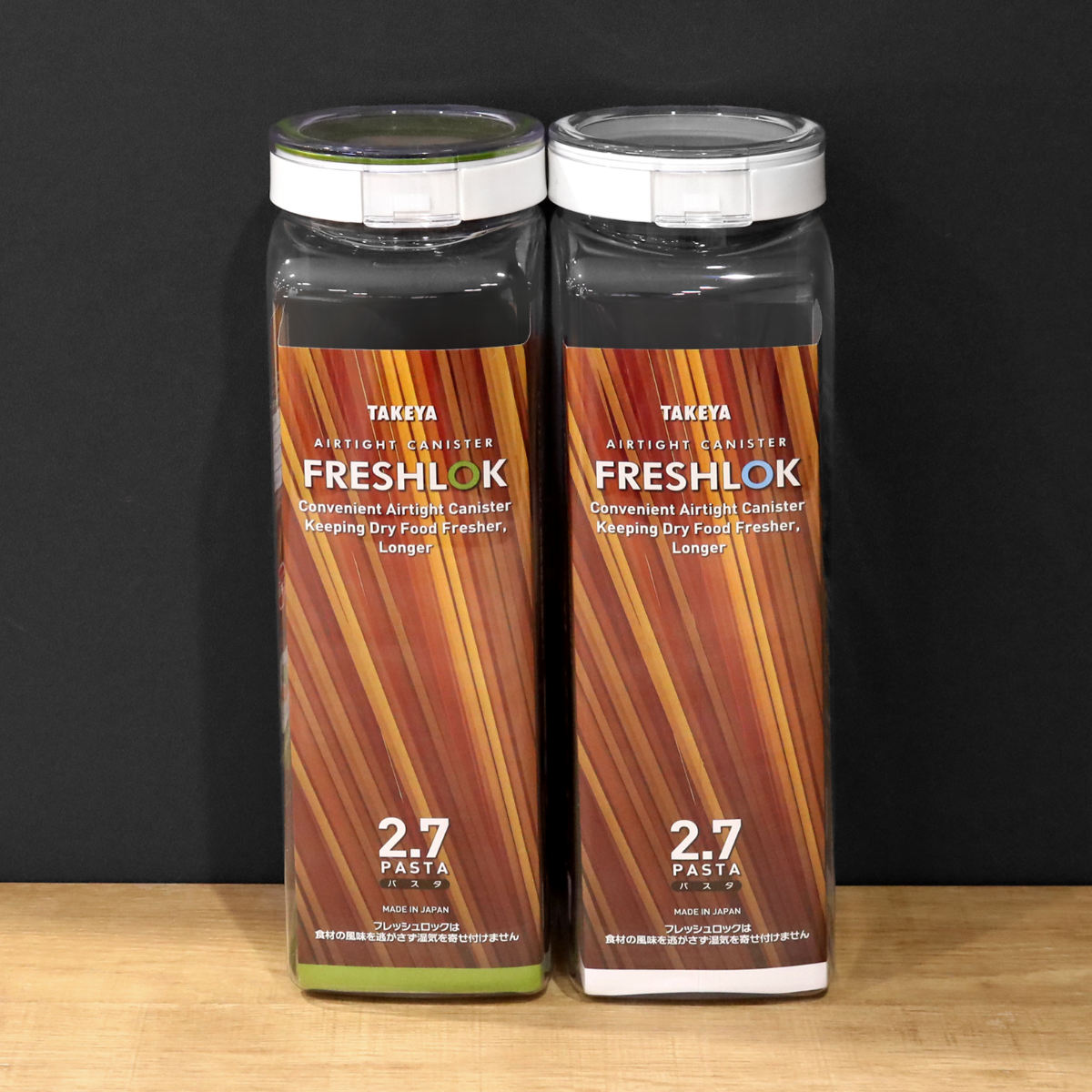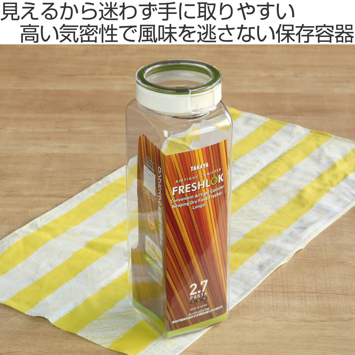 パスタケース 保存容器 フレッシュロック 2.7L お得な同色3個セット 選べるカラー パスタメジャー付き ( パスタポット キャニスター ストッカー 密閉 日本製 透明 ロングパスタ ワンタッチ 高気密 中が見える 軽量 FRESHLOK ) 【グリーン】