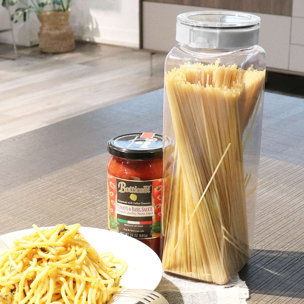 一般的なロングパスタも余裕をもって入れられる高さのあるパスタケース。ロングパスタやショートパスタなどの乾麺を保存するのに最適。袋のまま入れておくこともできます。これから新生活を始める方はもちろん、すでに持っていて増やしたい方にもおすすめです。